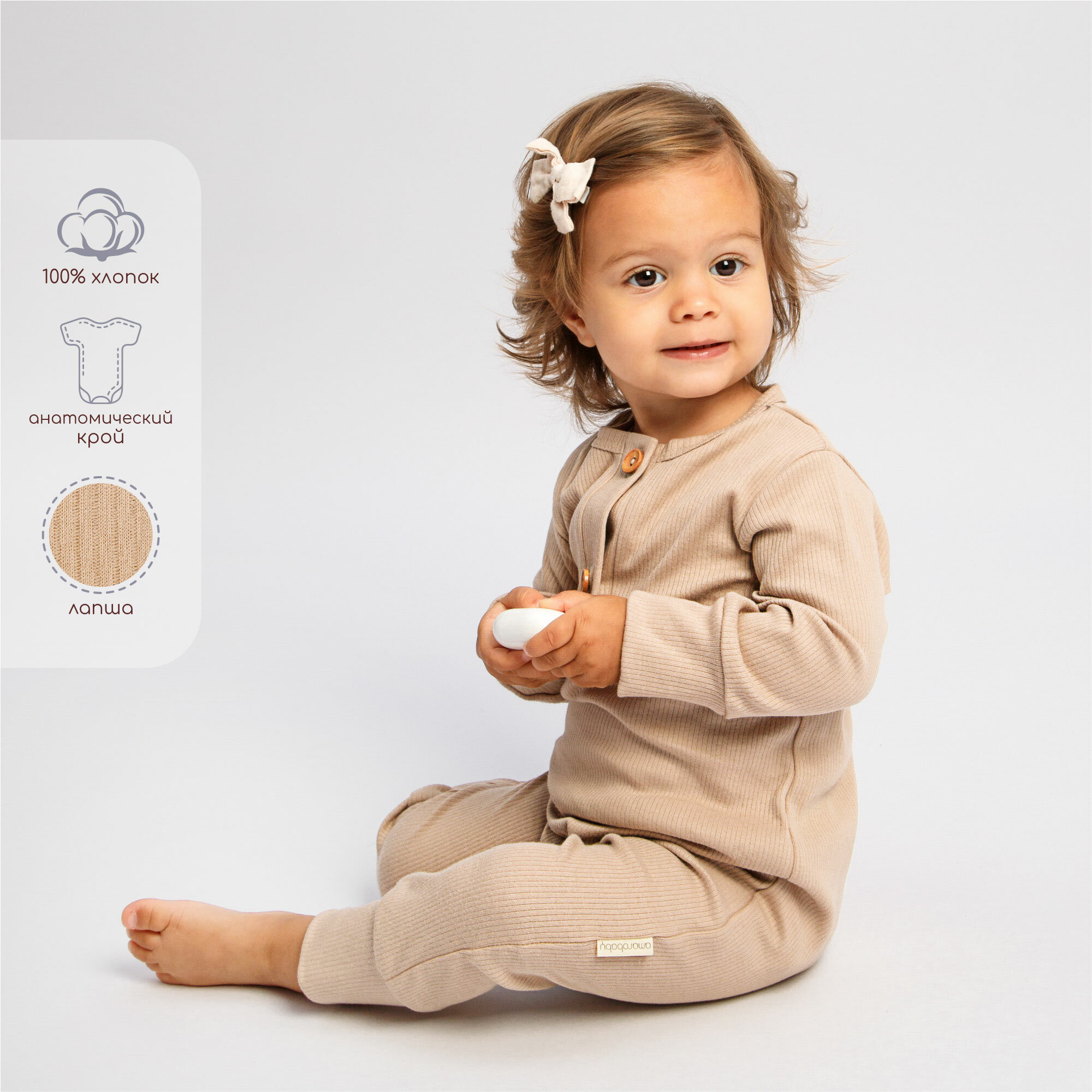 СохранитьКомбинезон Amarobaby Fashion, открытая стопа, размер 68, бежевый интересное: