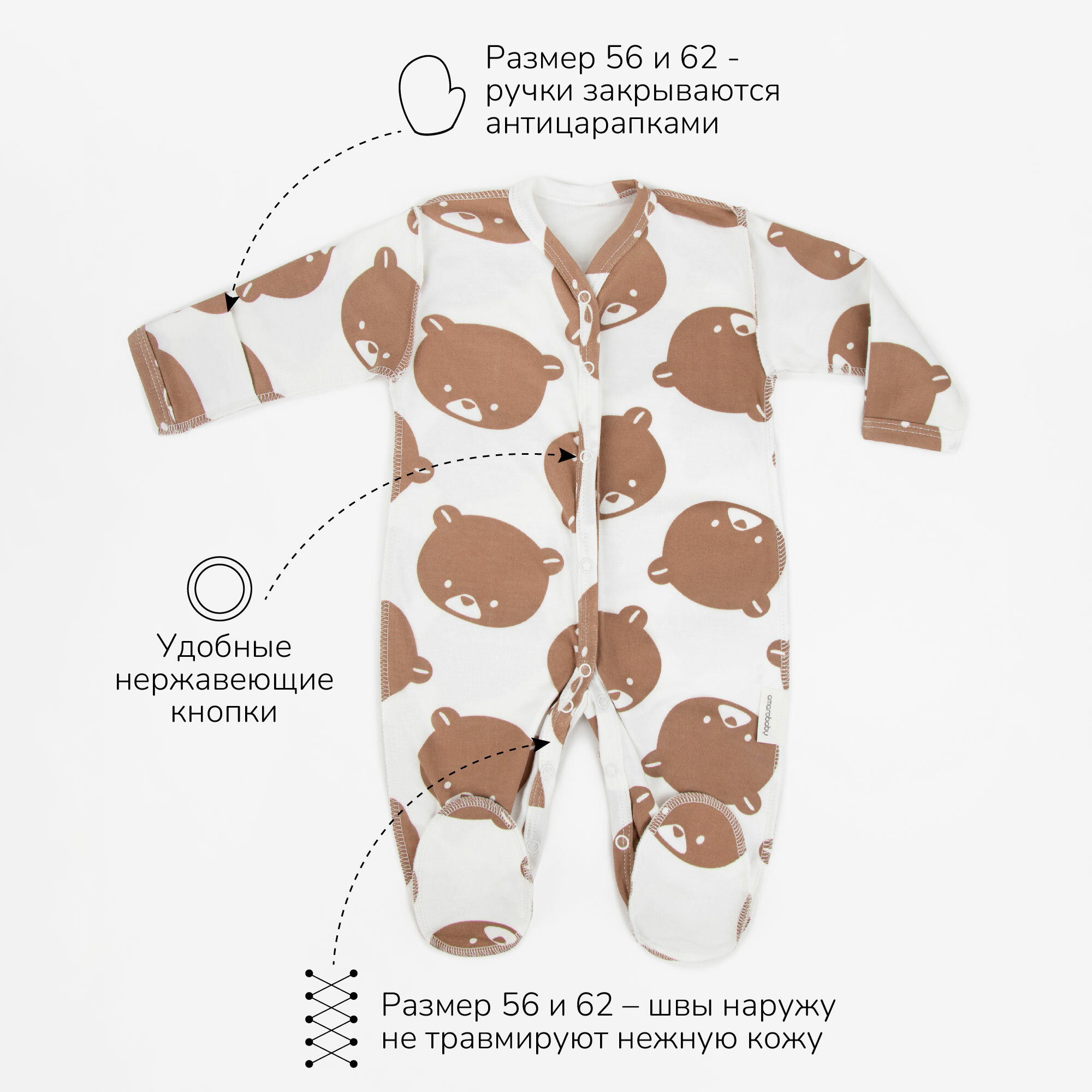 СохранитьКомбинезон Amarobaby Nature, закрытая стопа, комплект из 2 шт., размер 80-86, коричневый интересное: