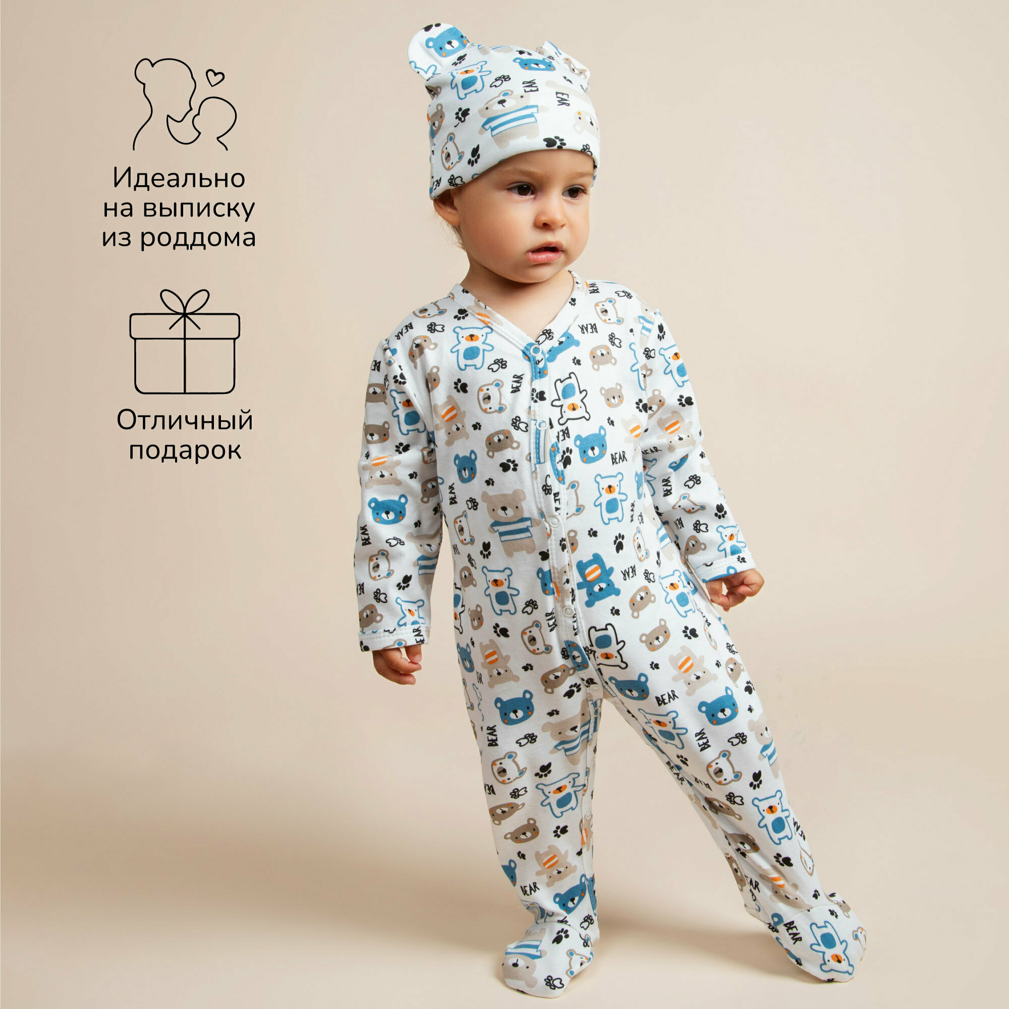 Комбинезон Amarobaby Nature, закрытая стопа, комплект из 2 шт., размер 62-68, белый