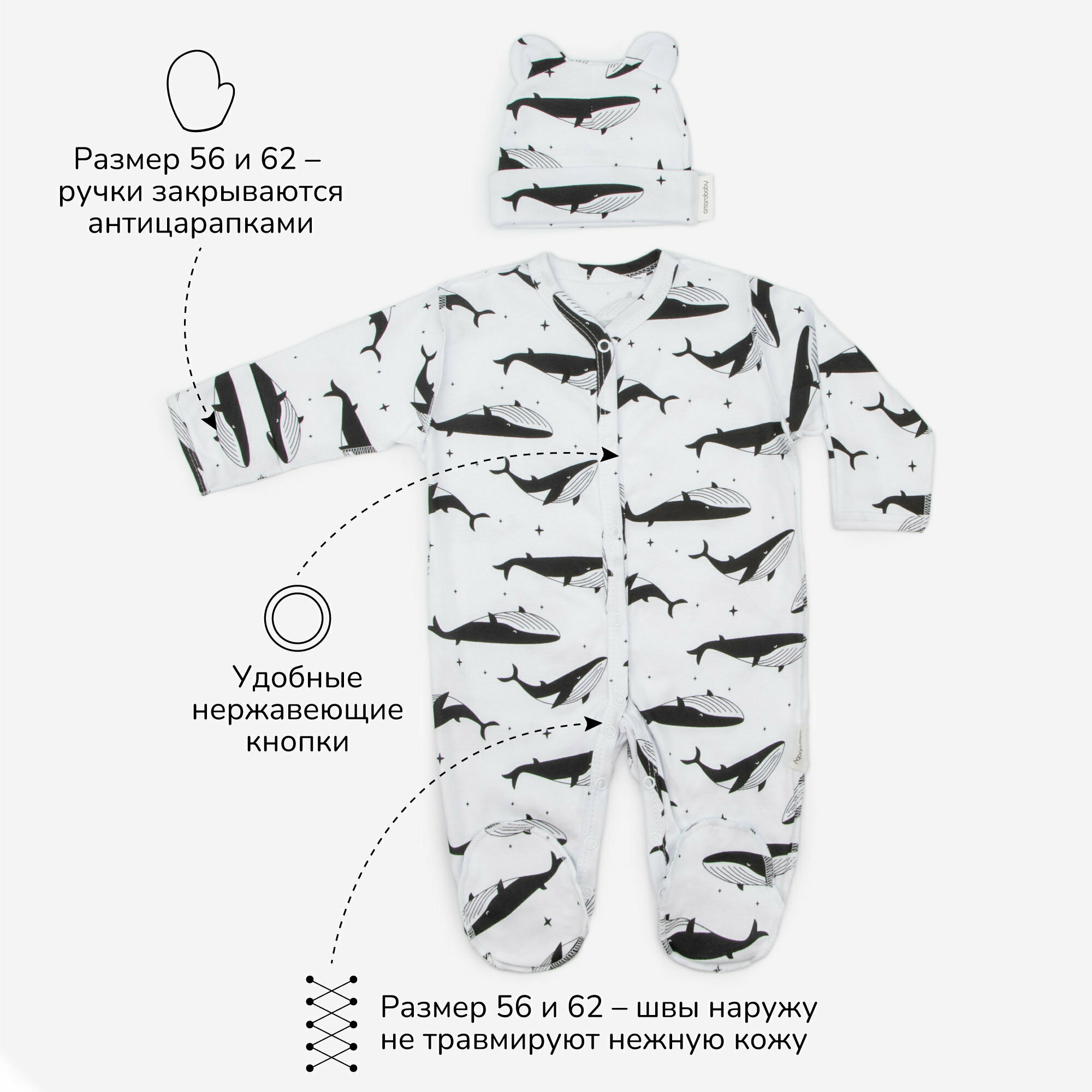Комбинезон Amarobaby Nature, закрытая стопа, комплект из 2 шт., размер 56-62, белый