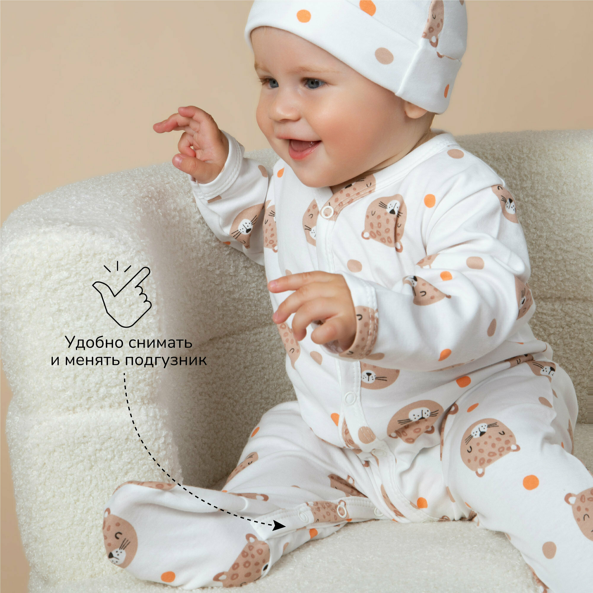 Комбинезон Amarobaby Nature, закрытая стопа, комплект из 2 шт., размер 62-68, белый