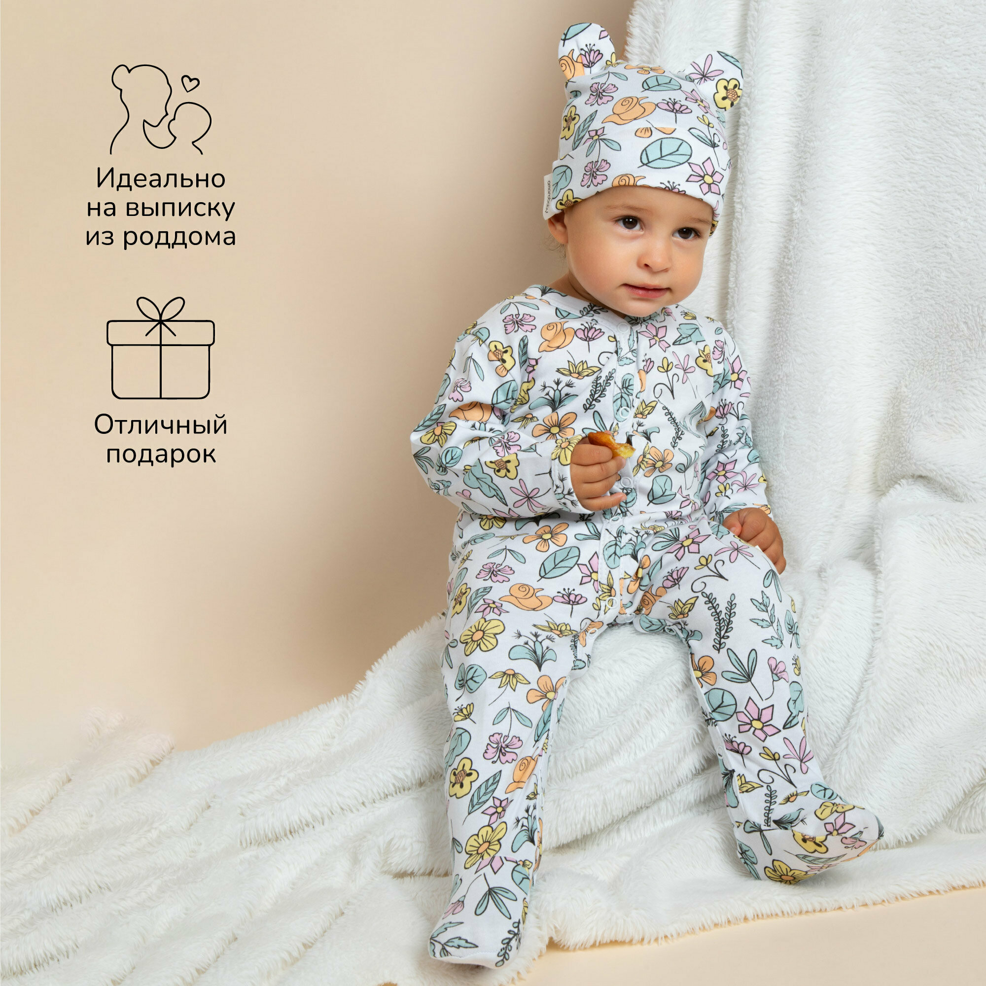 Комбинезон Amarobaby Nature, закрытая стопа, комплект из 2 шт., размер 56-62, мультиколор