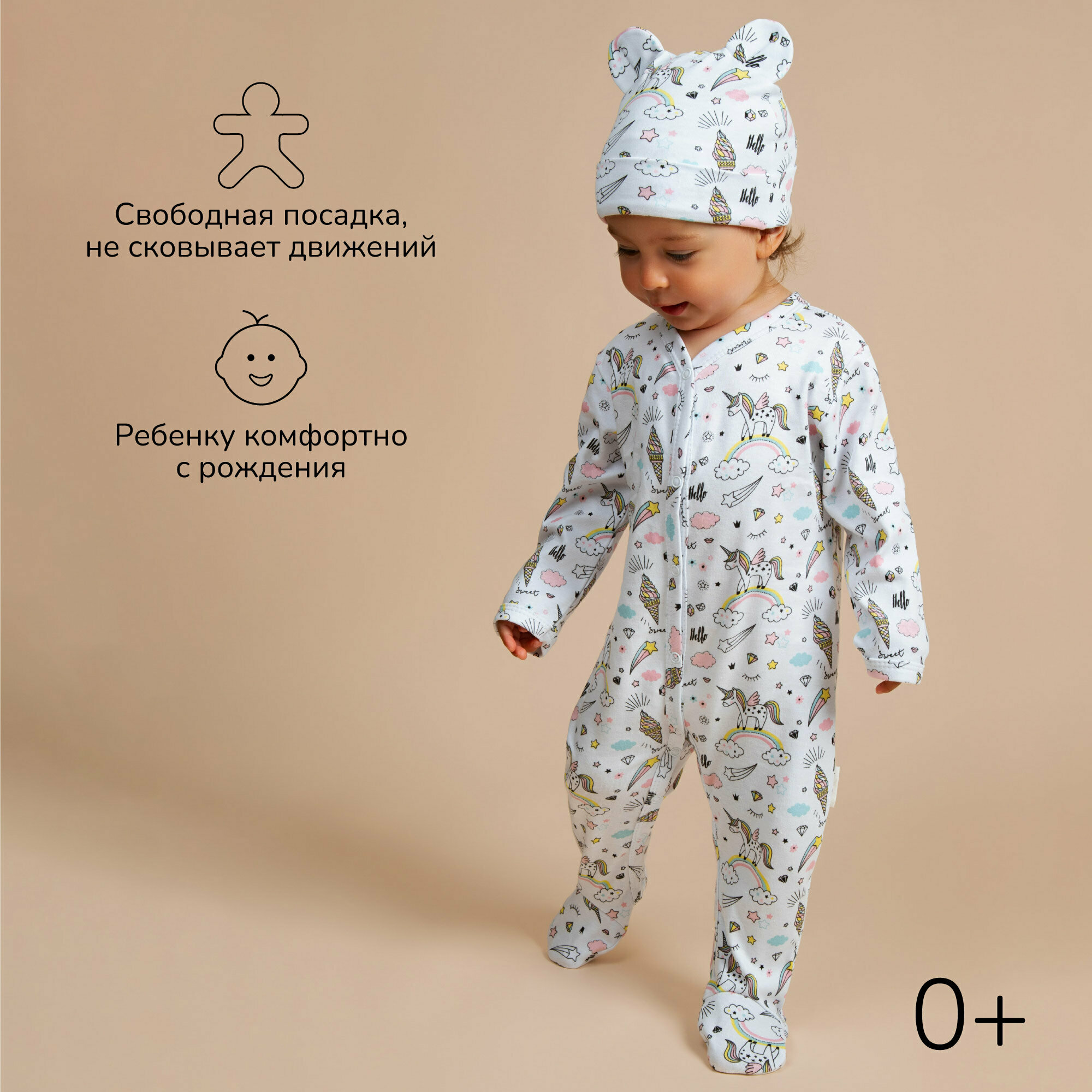 Комбинезон Amarobaby Nature, закрытая стопа, комплект из 2 шт., размер 62-68, белый