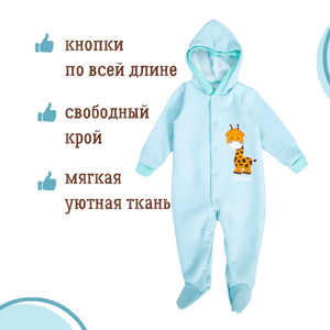 Комбинезон РиД - Родители и Дети, закрытая стопа, размер 80/52, бирюзовый интересное: