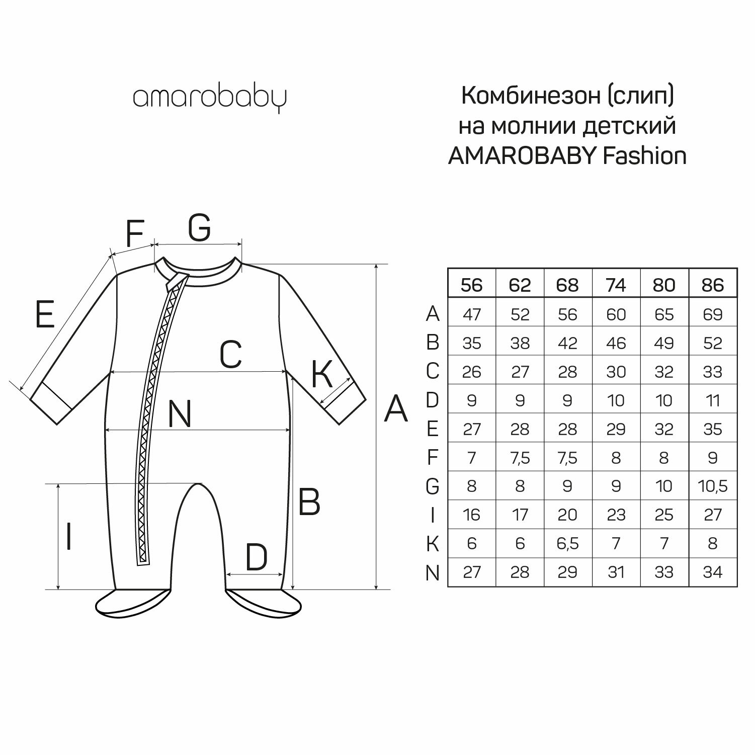 Комбинезон Amarobaby Fashion, закрытая стопа, размер 68, milky