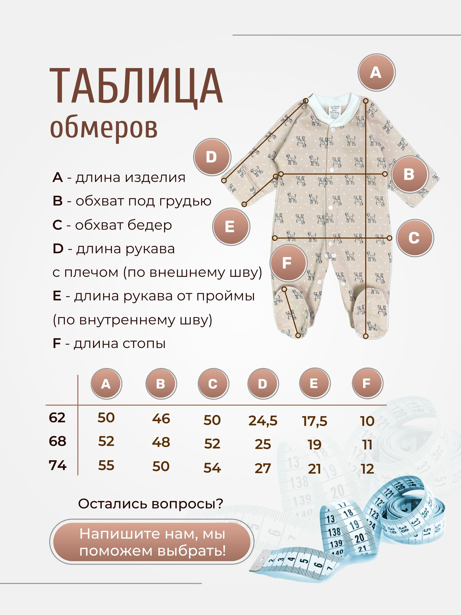 Комбинезон Clariss Осень-зима 2024, закрытая стопа, размер 20 (62-68) 2-3 мес., какао