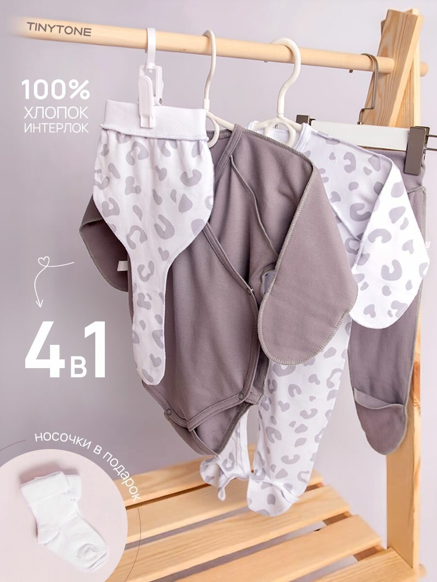 Комбинезон Наша история новорожденные, закрытая стопа, размер 56-62, Леопард серый