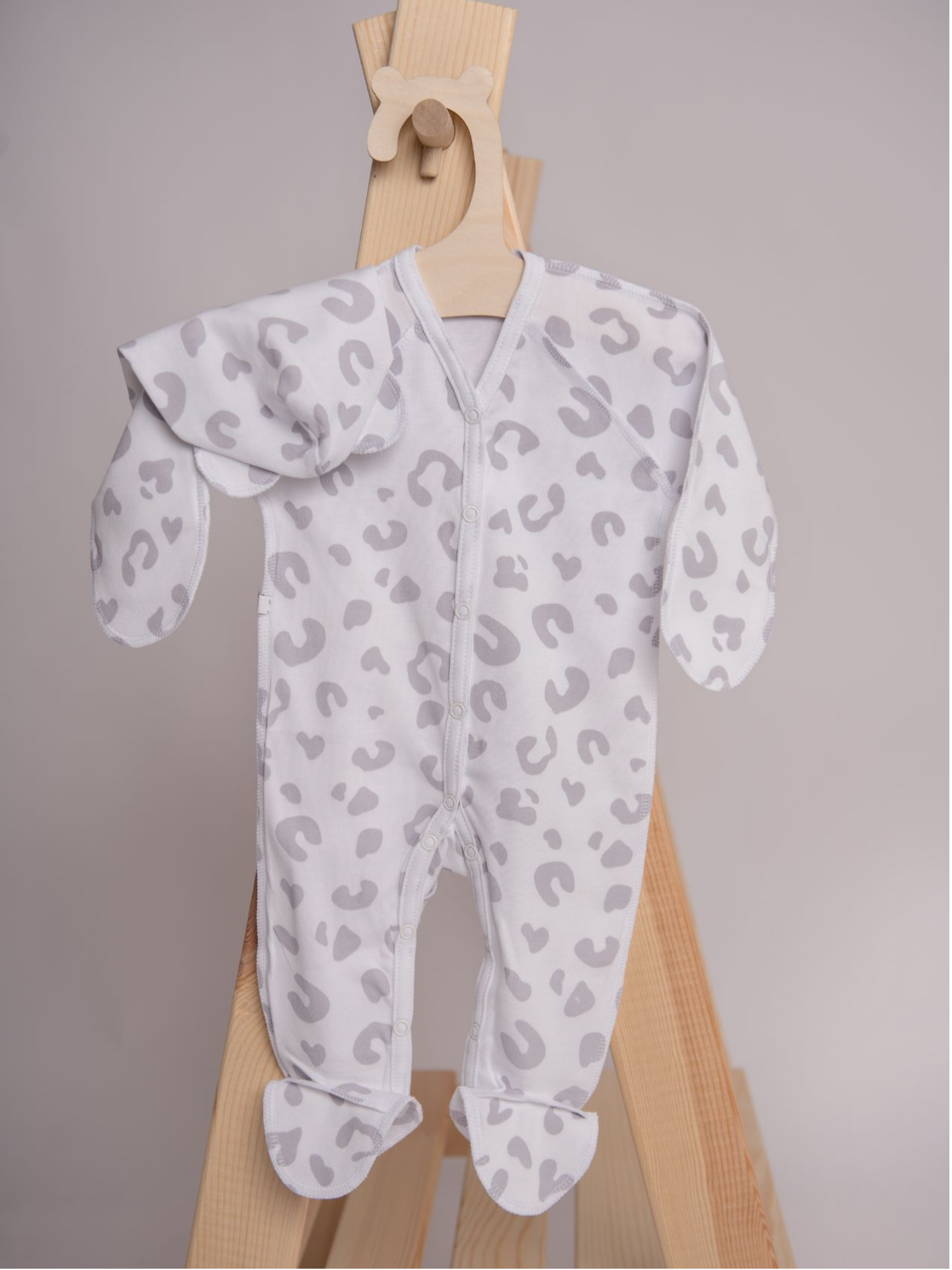 Комбинезон Наша история новорожденные, закрытая стопа, размер 56-62, Леопард серый