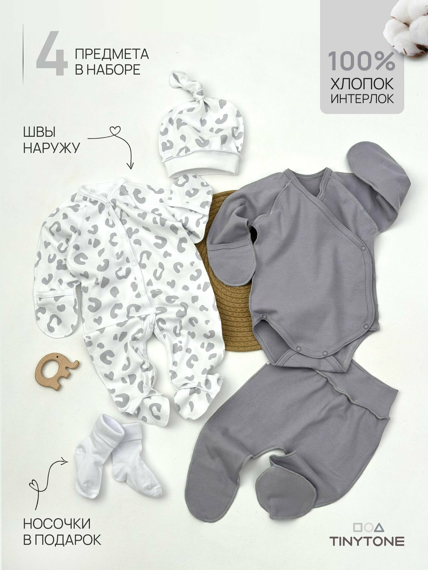 Комбинезон Наша история новорожденные, закрытая стопа, размер 56-62, Леопард серый