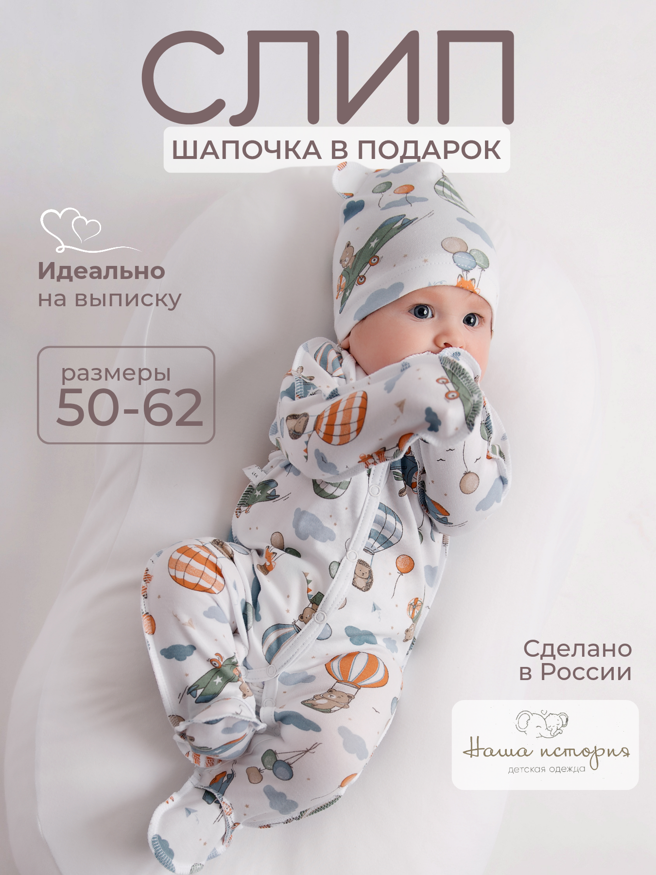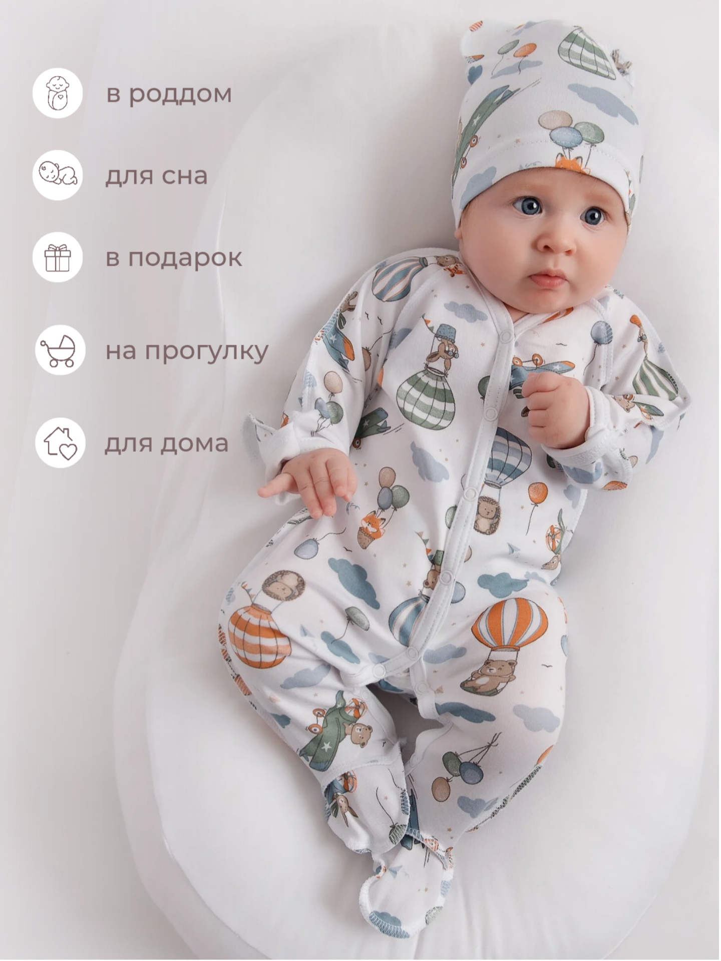 Купить Комбинезон Наша история новорожденные, закрытая стопа, размер 56-62, воздушный шар