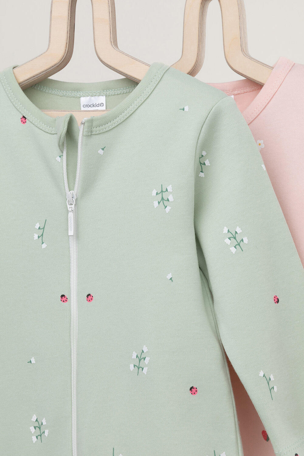 Купить Комбинезон crockid К 6522-2уп/клубничный мусс,ландыши, открытая стопа, комплект из 2 шт., размер 44/68, зеленый, розовый