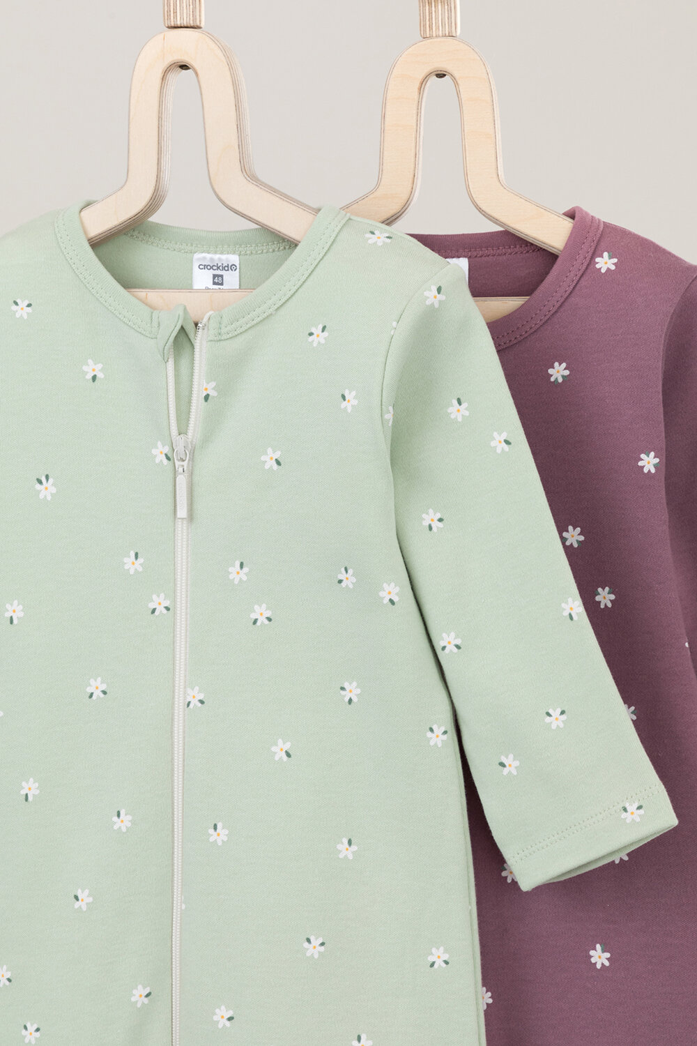 Купить Комбинезон crockid К 6522-2уп/поле с ромашками, открытая стопа, комплект из 2 шт., размер 40/62, фиолетовый, зеленый