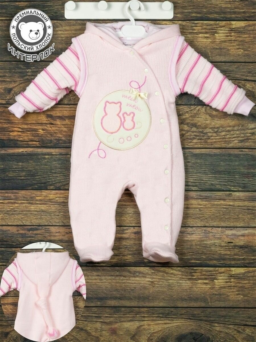 Комбинезон Карапузик, закрытая стопа, размер 62-68, рoзовый интересное: