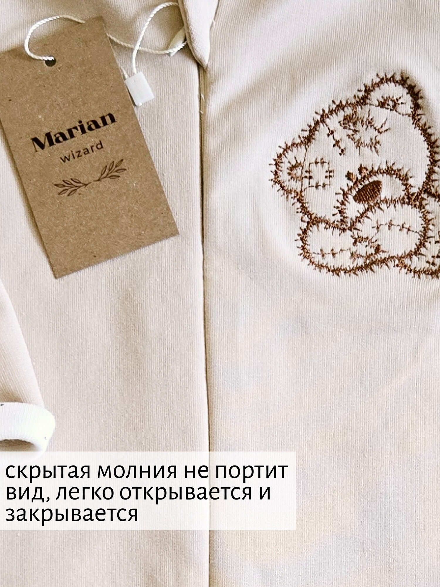 Комбинезон Marianwizard Комбинезон из футера для малышей с вышивкой в в иде мишки, шапка в комплекте, закрытая стопа, размер 62, бежевый интересное:
