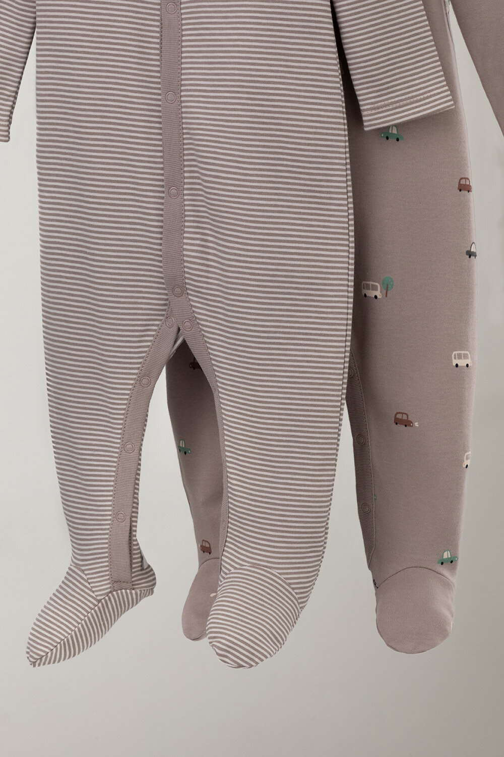 Комбинезон crockid К 6025-2уп/быстрые машинки,полоска, закрытая стопа, комплект из 2 шт., размер 44/68, коричневый