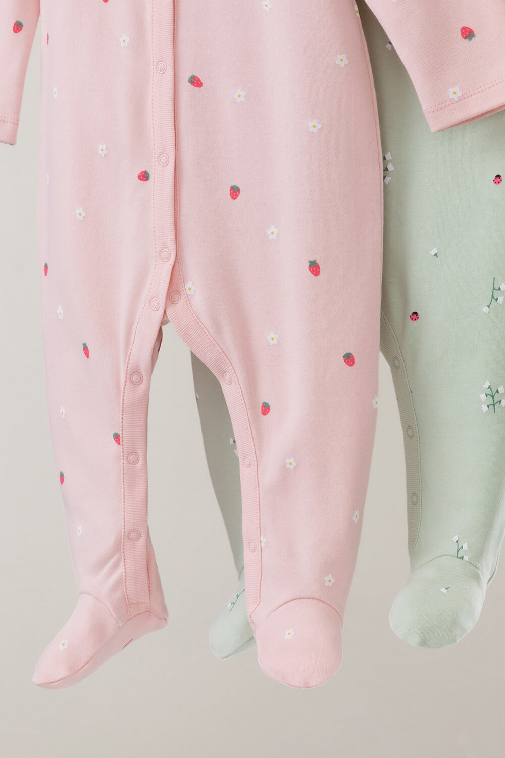 Комбинезон crockid К 6025-2уп/клубничный мусс,ландыши, закрытая стопа, комплект из 2 шт., размер 44/68, розовый, зеленый