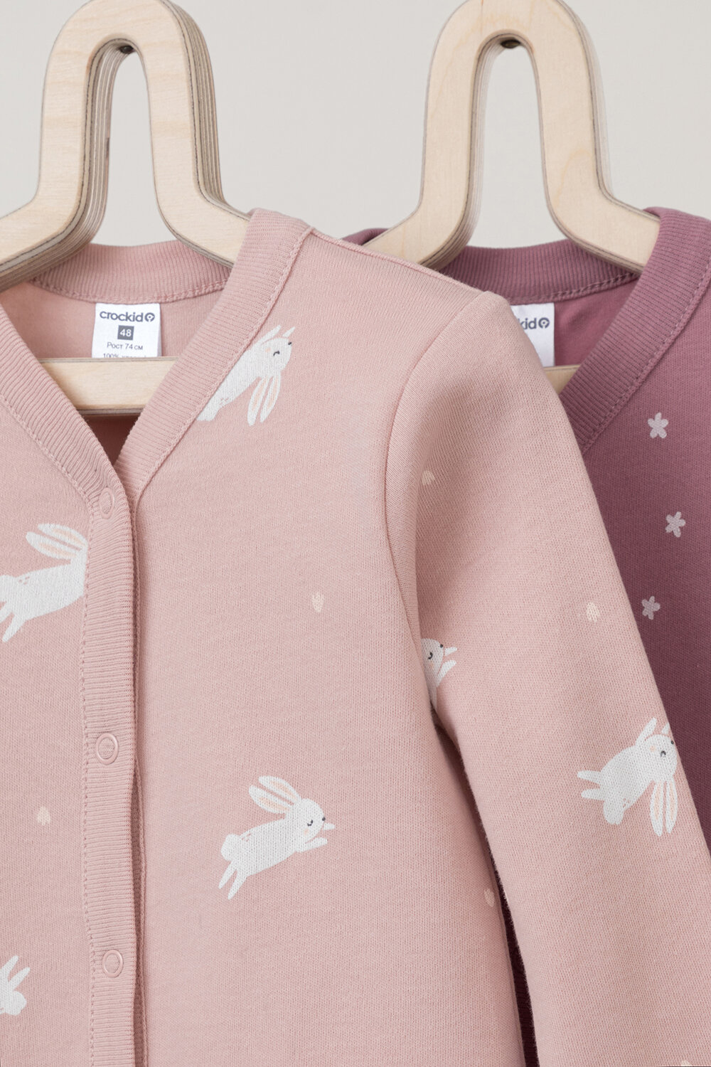 Комбинезон crockid К 6025-2уп/цветочные снежинки,зайчики, закрытая стопа, комплект из 2 шт., размер 48/74, розовый