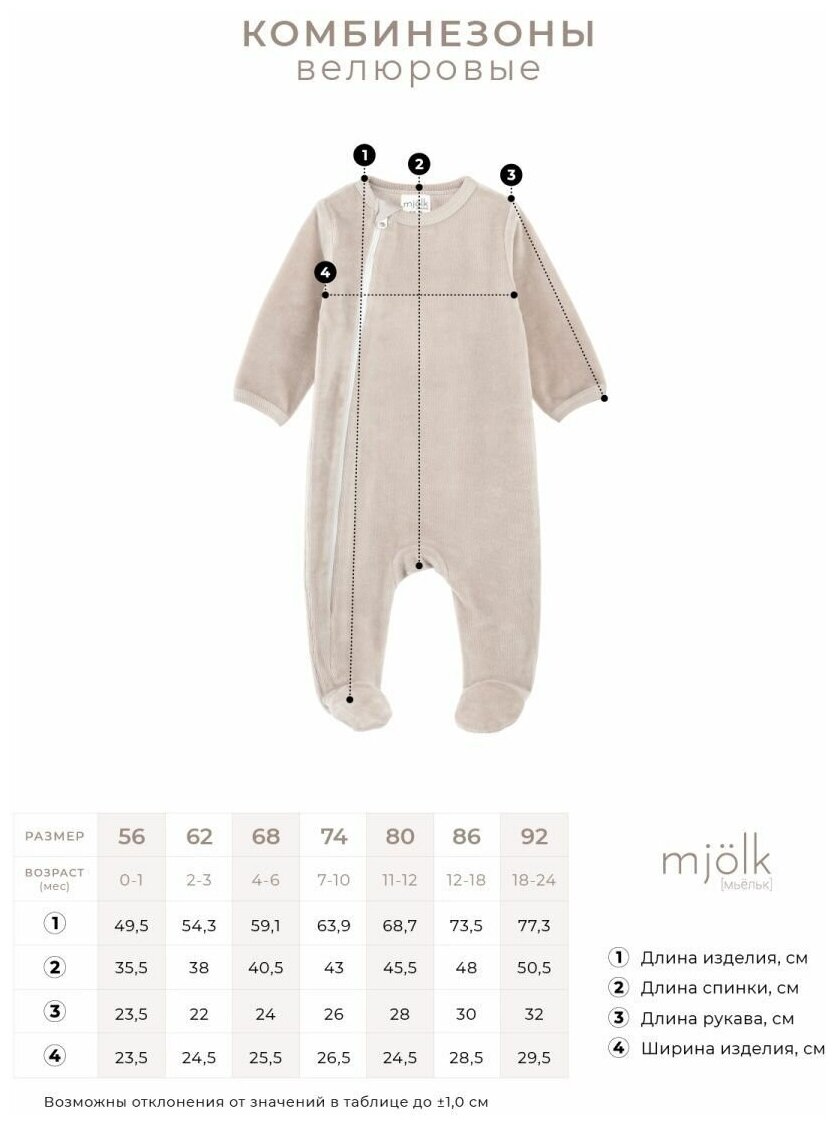 Комбинезон Mjolk, закрытая стопа, размер 74, white sand