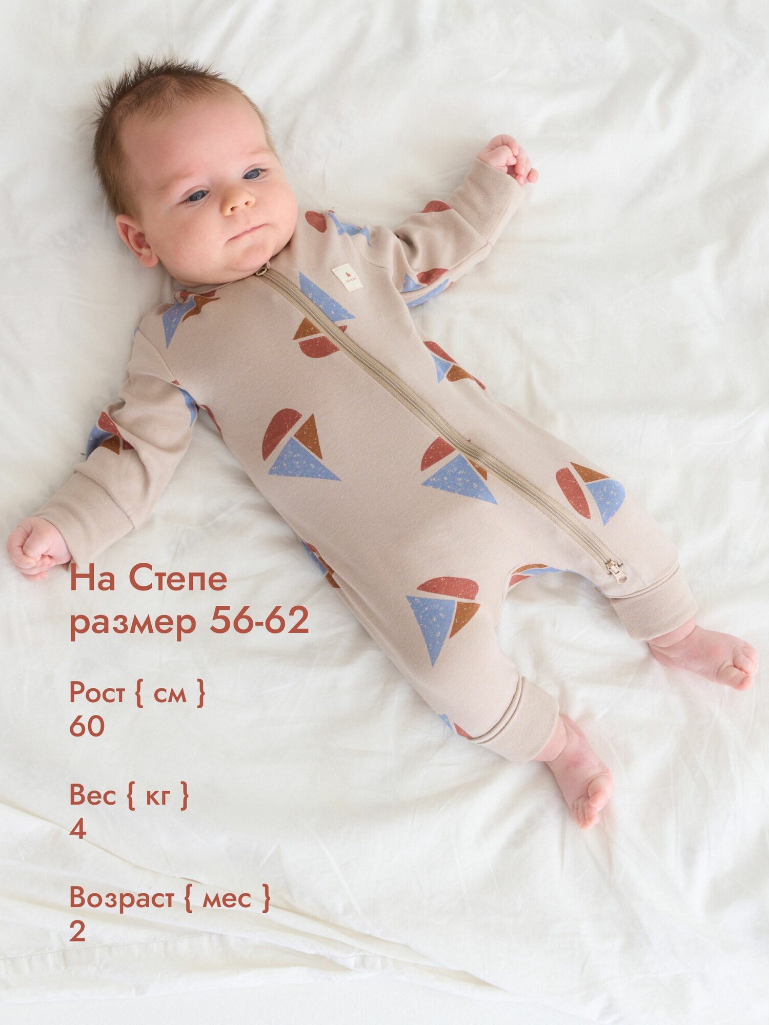 Комбинезон Luna & Mark Зима-весна 2025, открытая стопа, размер 56-62, бежевый
