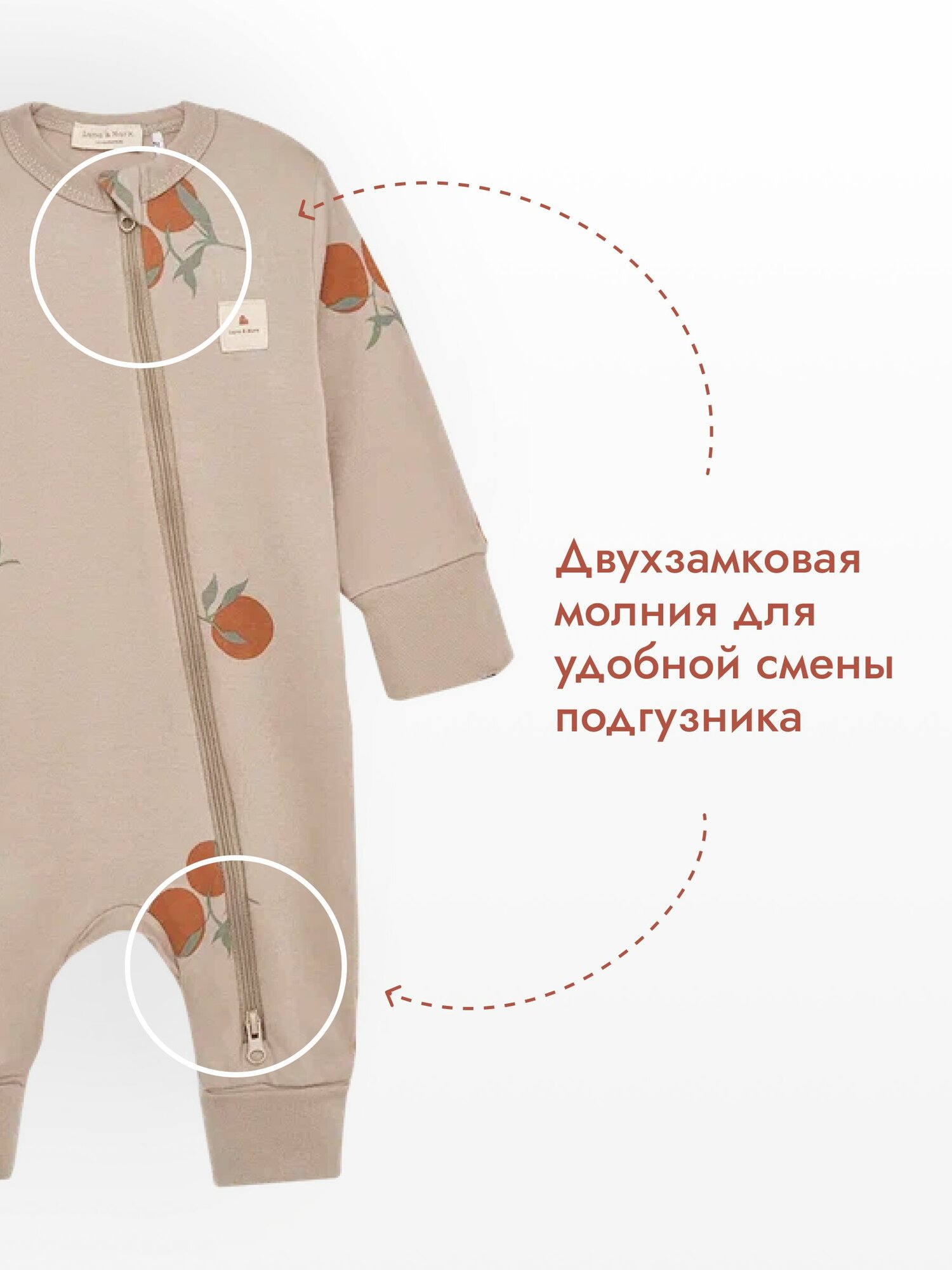 Комбинезон Luna & Mark Комбинезон нательный слип на молнии, открытая стопа, размер 62-68, оранжевый, бежевый
