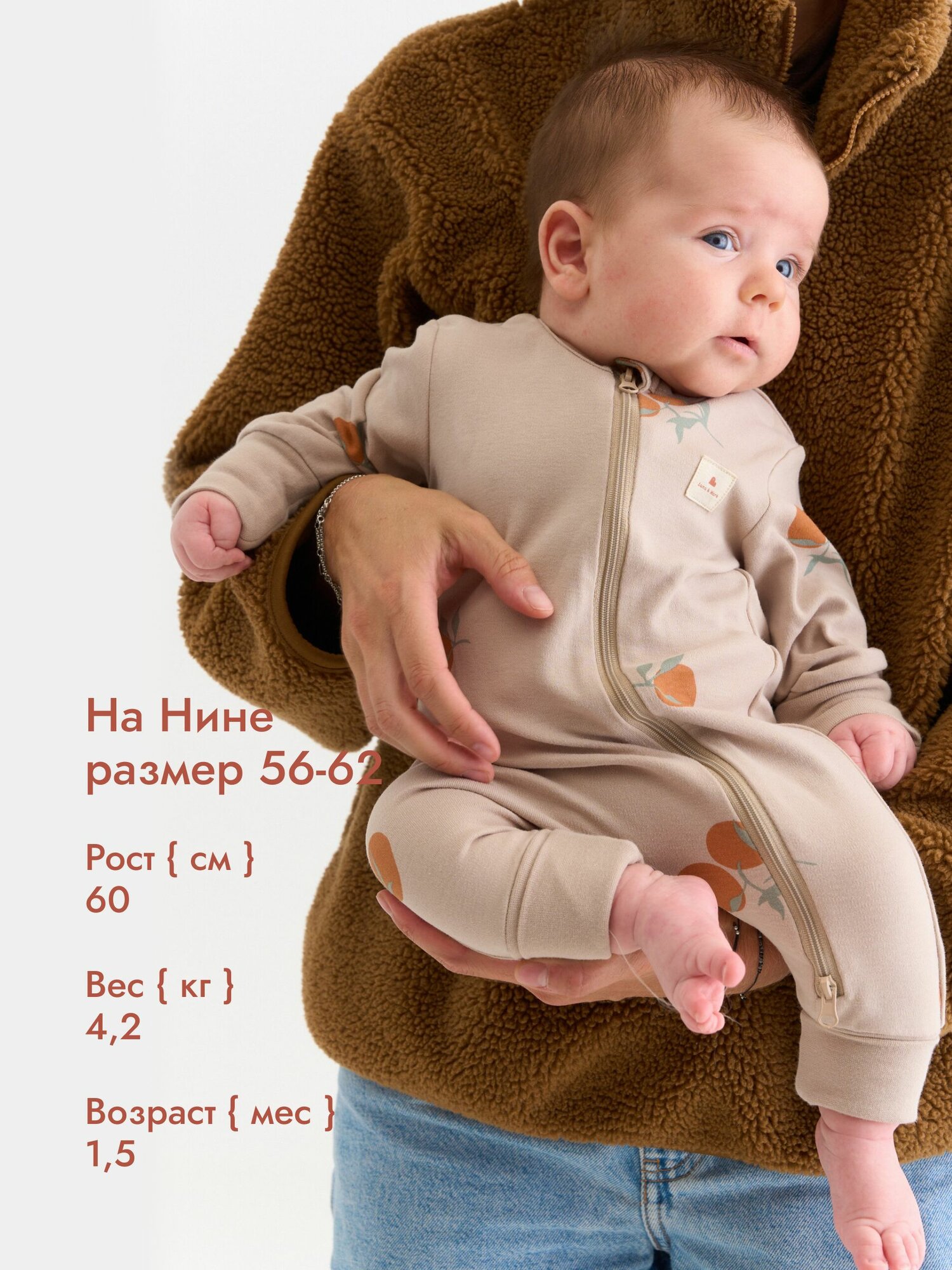Комбинезон Luna & Mark Зима-Весна 2024, открытая стопа, размер 62-68, бежевый