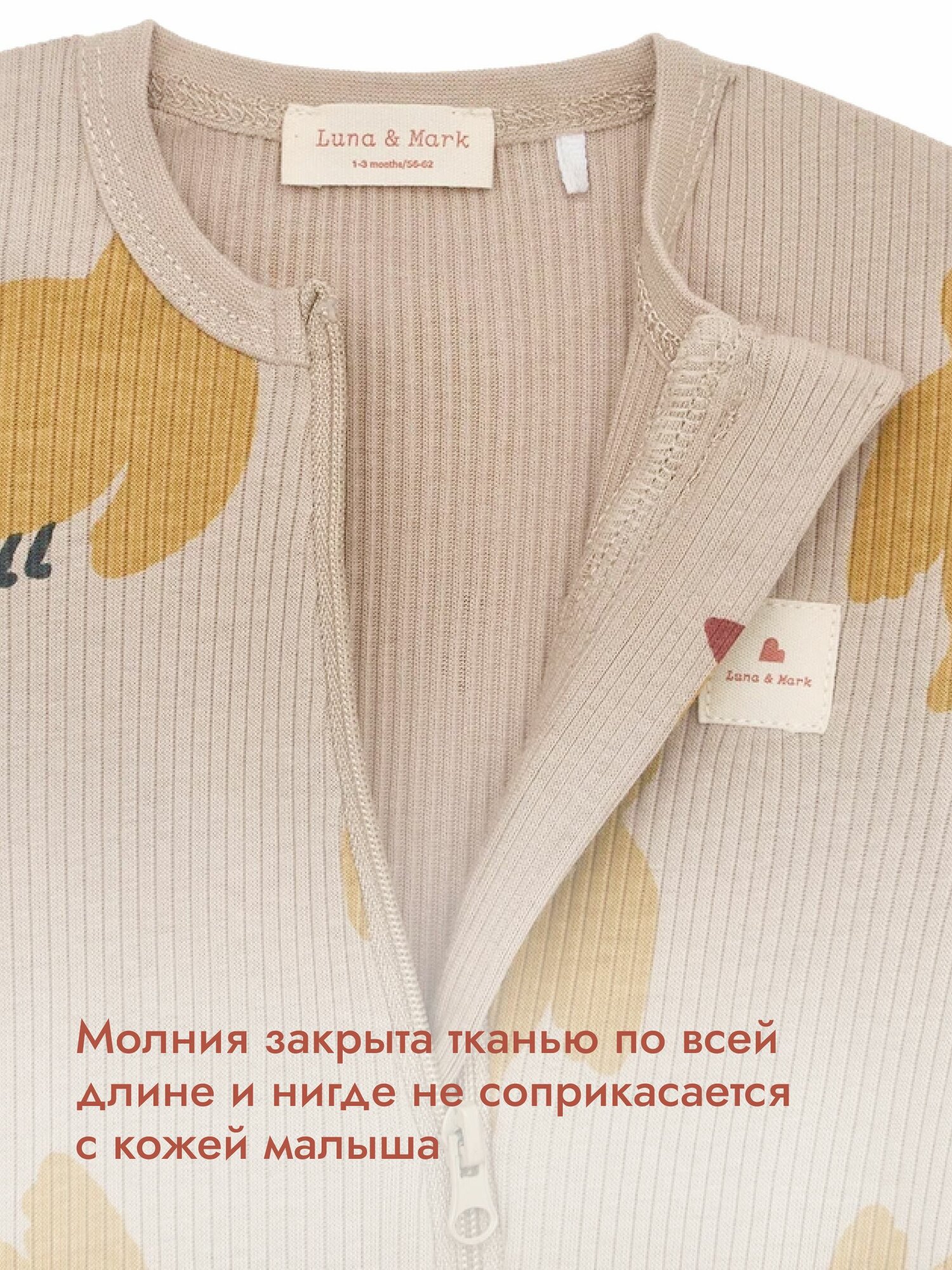 Комбинезон Luna & Mark Комбинезон нательный слип на молнии, открытая стопа, размер 62-68, оранжевый, бежевый