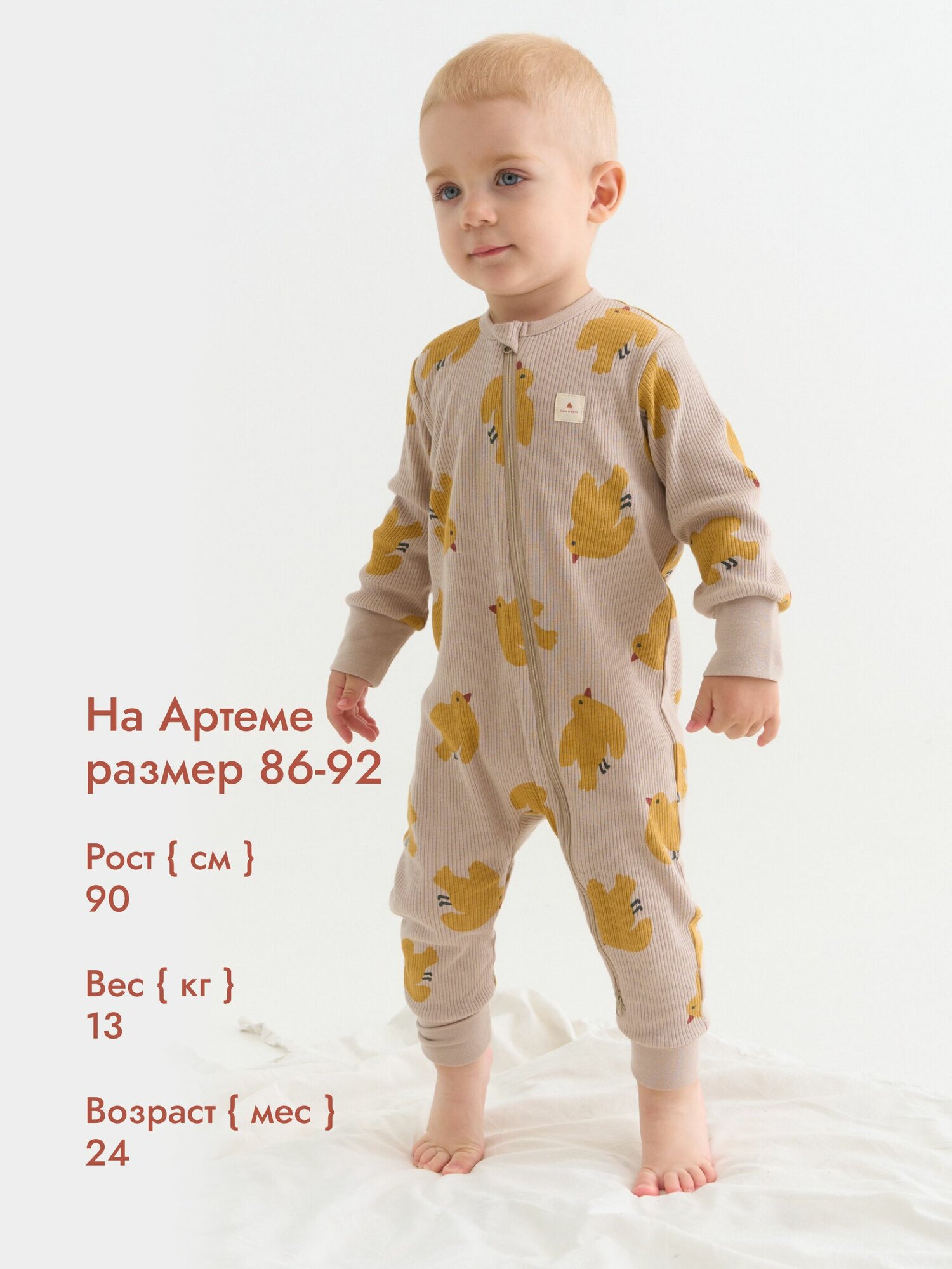 Комбинезон Luna & Mark Осень-зима 2024, открытая стопа, размер 86-92, бежевый
