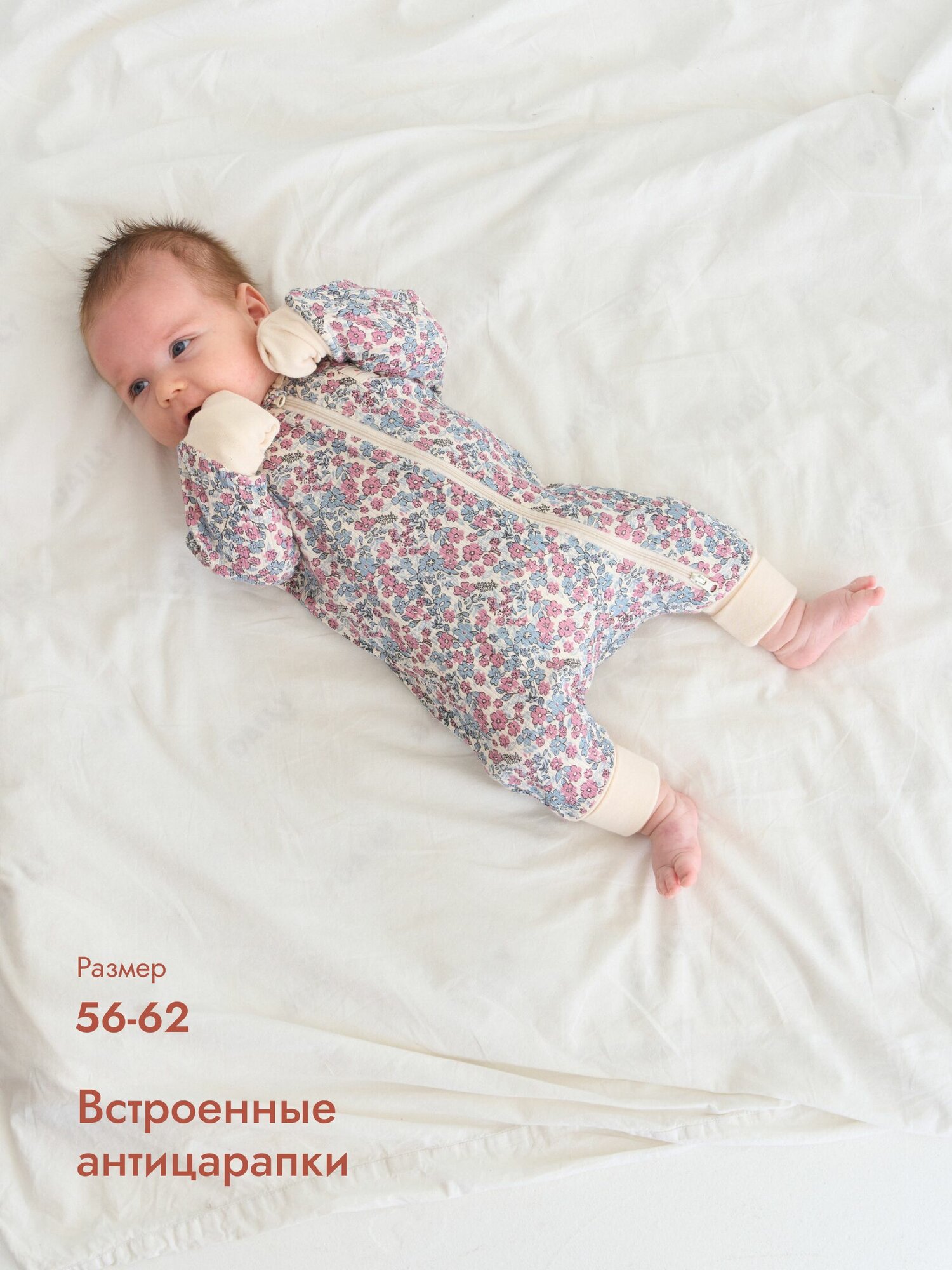 Комбинезон Luna & Mark Зима-Весна 2024, открытая стопа, размер 62-68, бежевый
