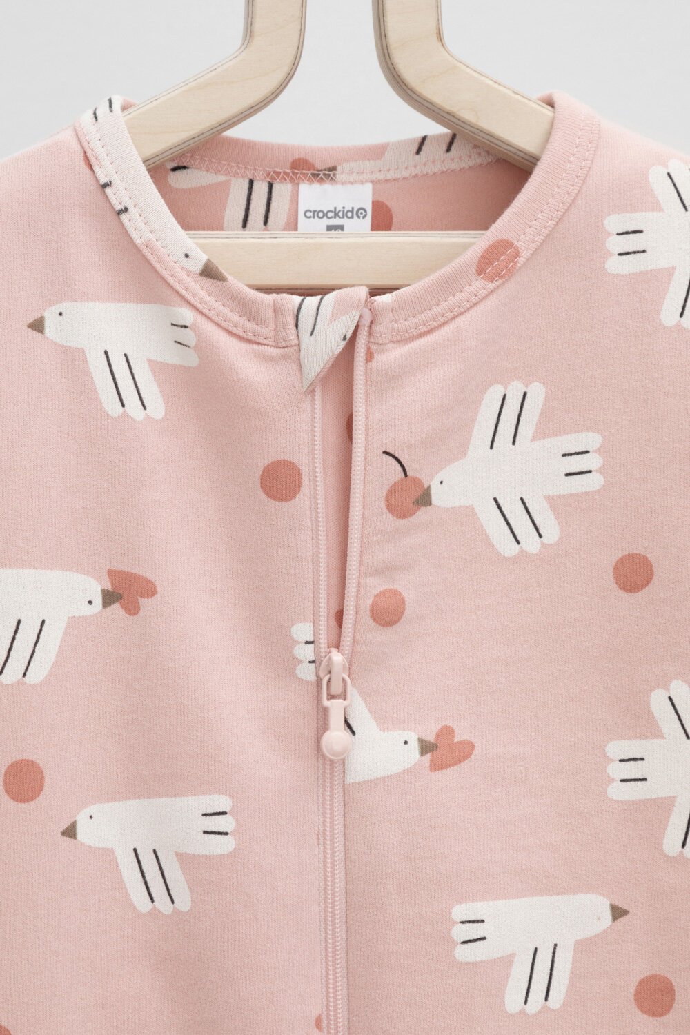 Комбинезон crockid К 6192/дымчатая роза,птички с вишенками, закрытая стопа, размер 44/68, розовый