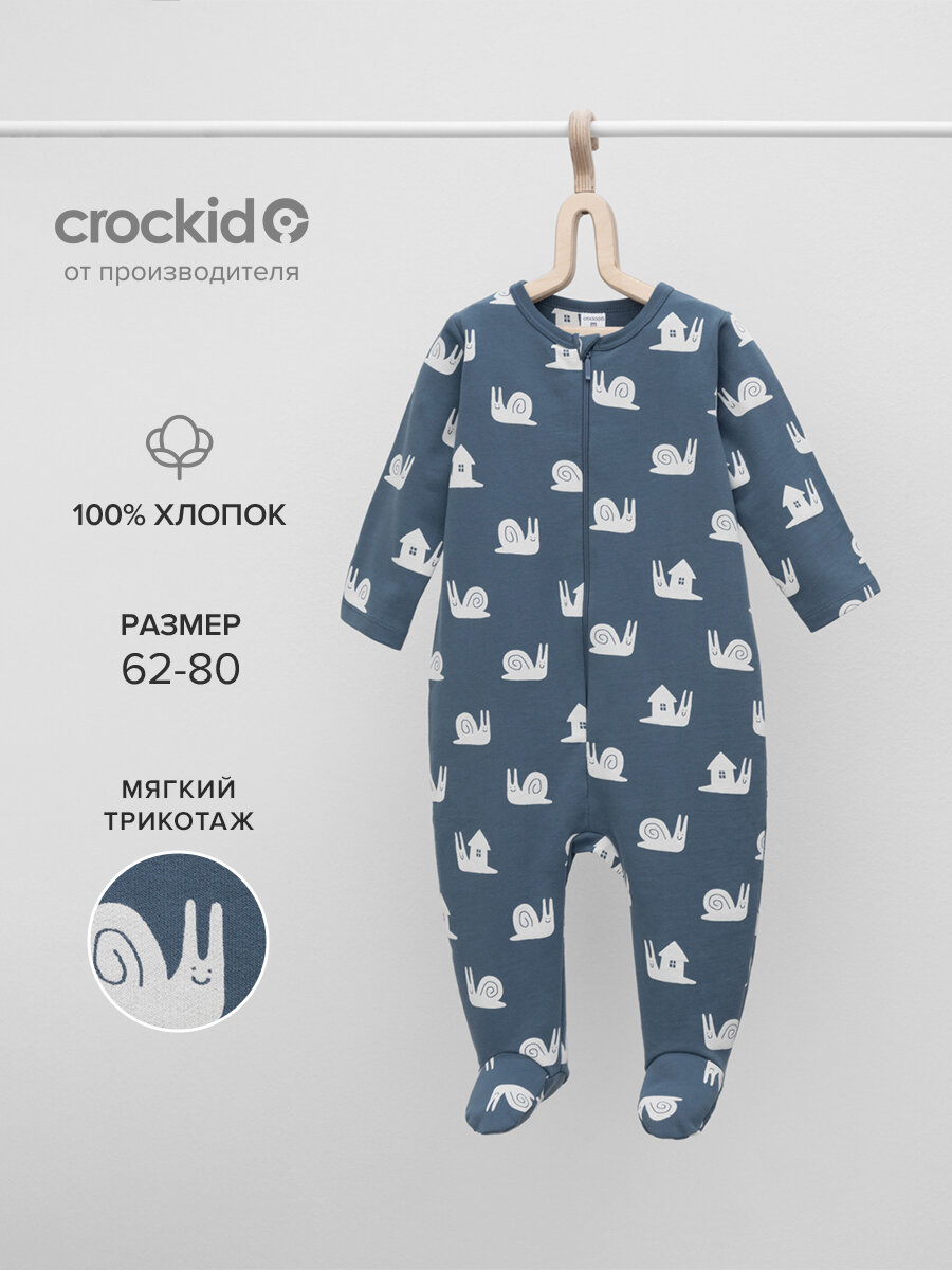 Купить Комбинезон crockid К 6192/винтажный синий,домик улитки, закрытая стопа, размер 40/62, синий