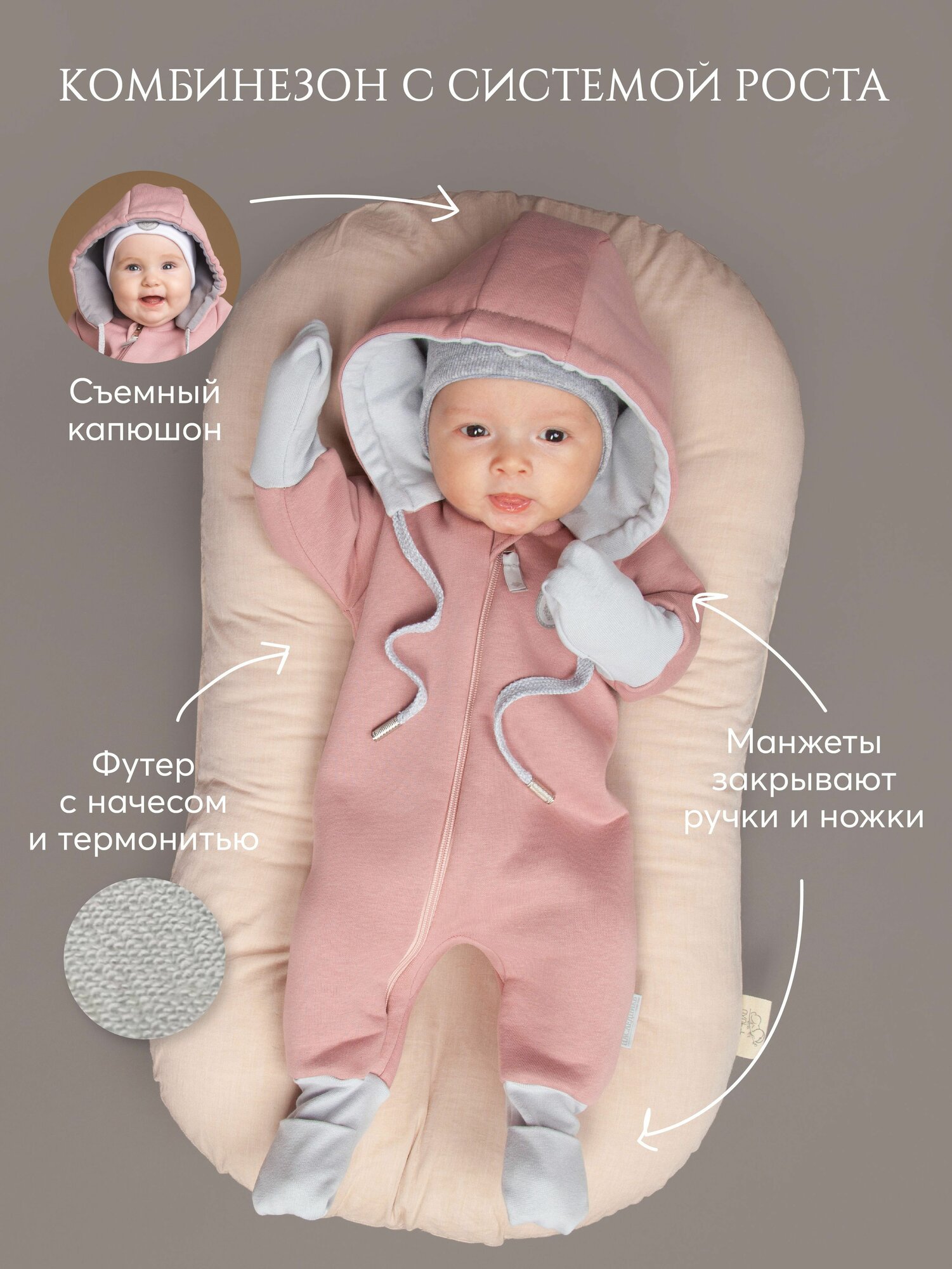 Комбинезон Наследникъ Выжанова Детская, открытая стопа, размер 62-74, розовый