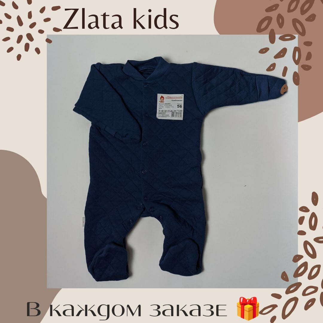 Комбинезон Малышеево, закрытая стопа, размер 56, cиний интересное: