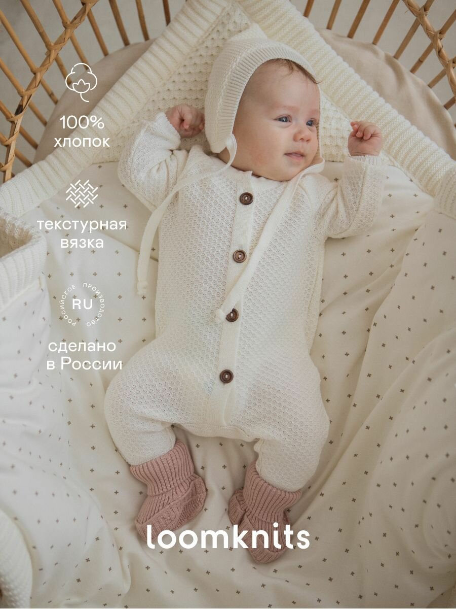 Комбинезон Loomknits Базовая коллекция, закрытая стопа, размер 68, белый