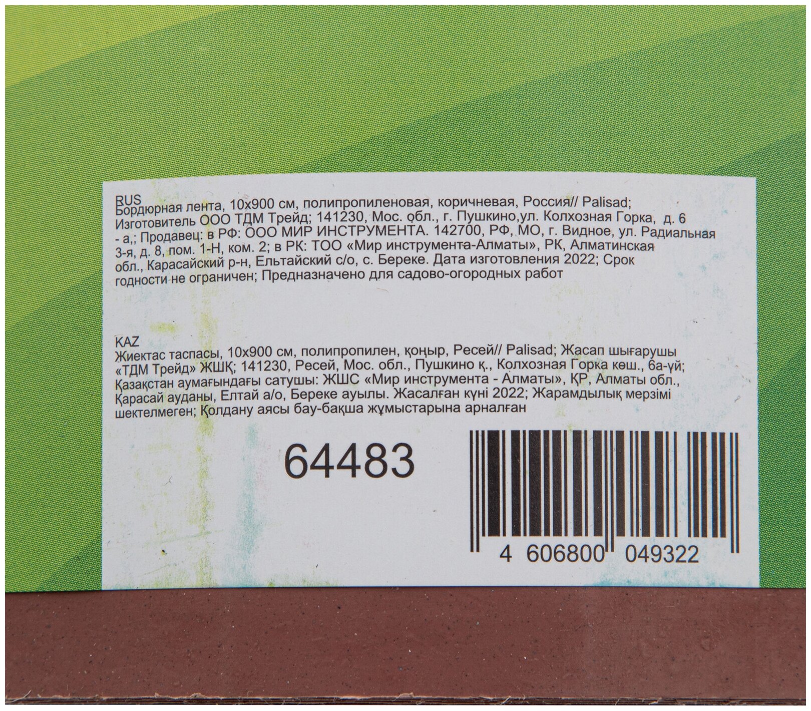Бордюрная лента, 10 х 900 см, полипропиленовая, коричневая, Россия, Palisad ( 64483 )