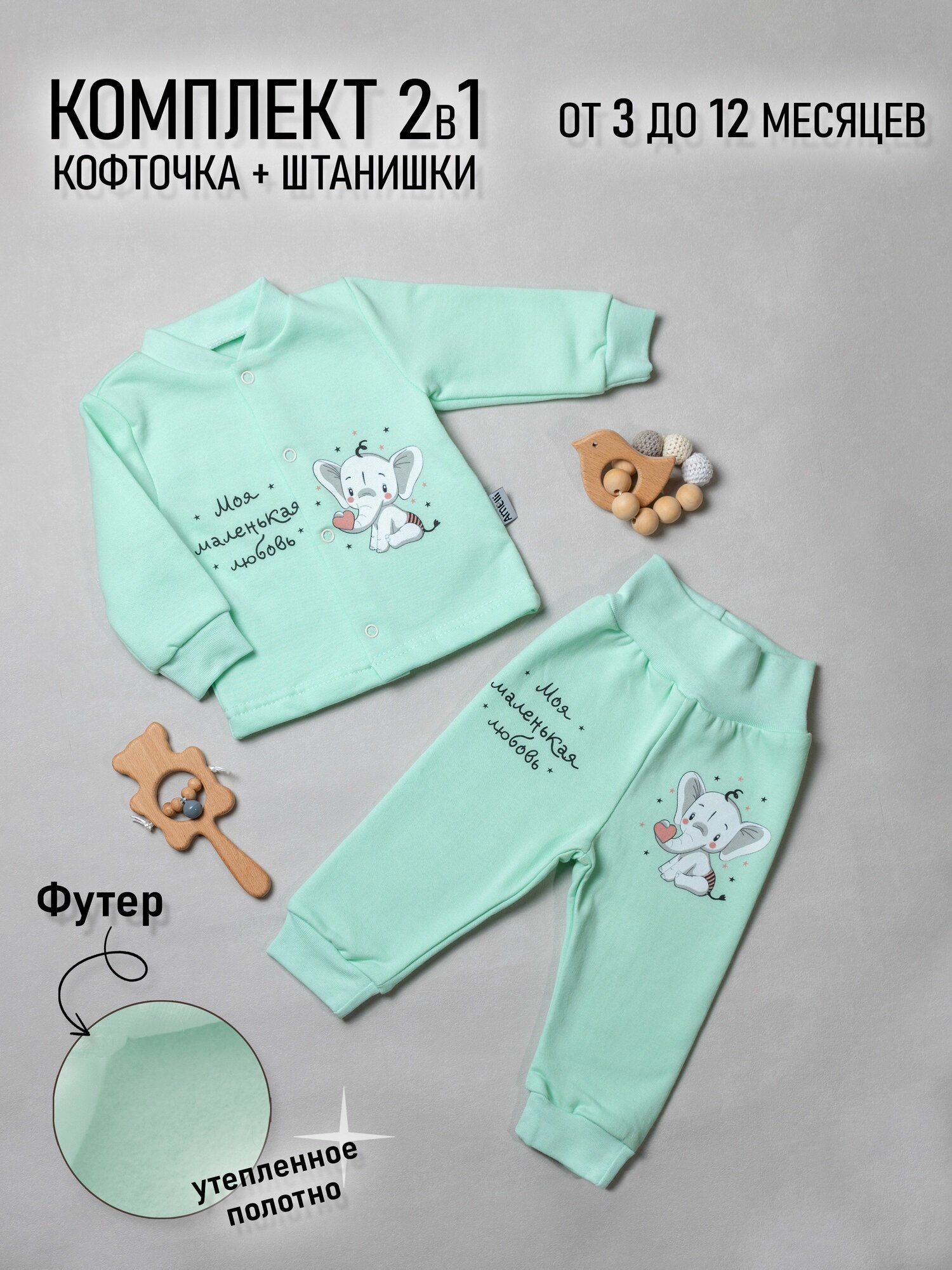 Комплект одежды Amelli Слоники, размер 86, зелeный