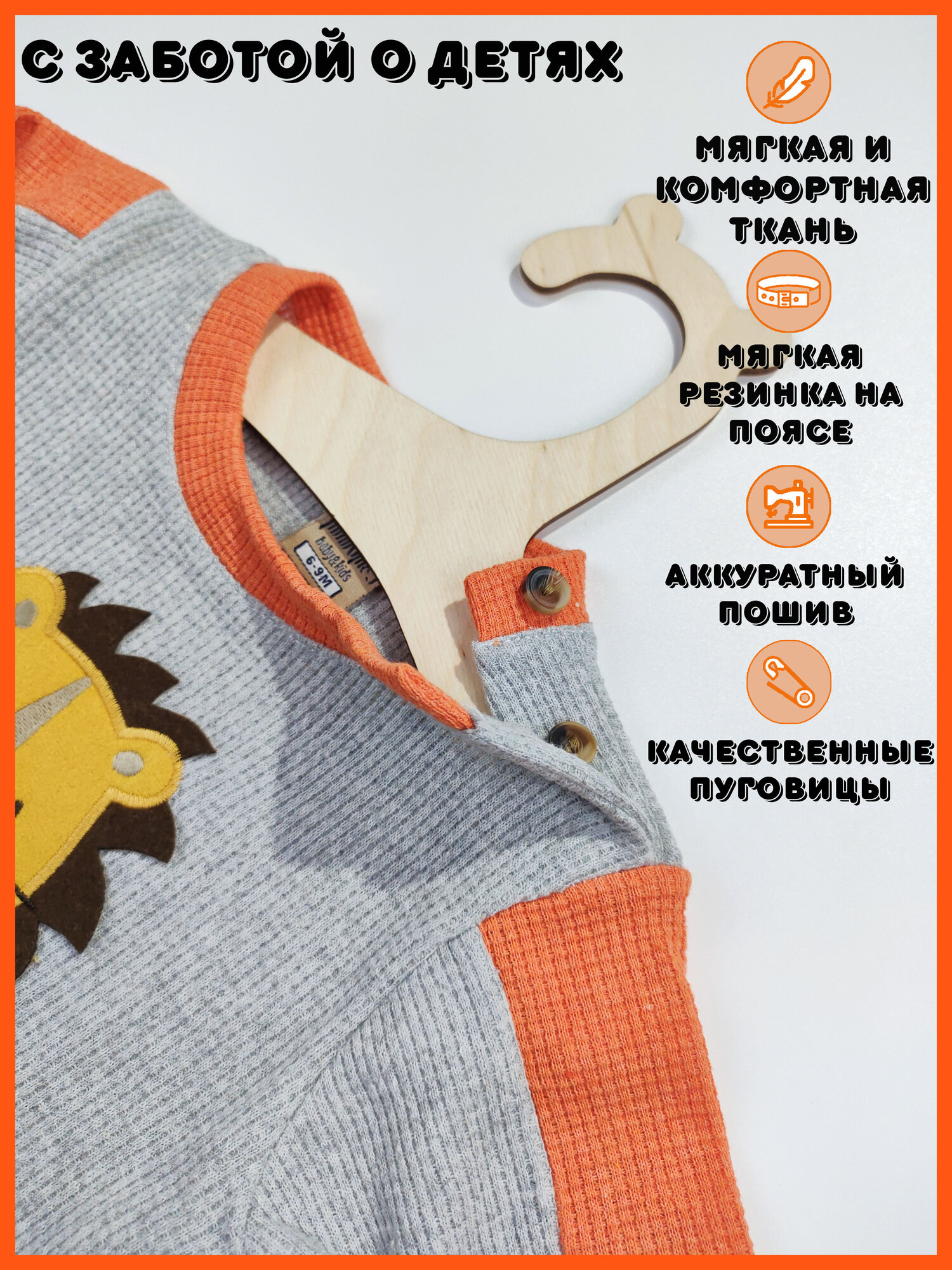 СохранитьКомплект одежды Базовая коллекция, размер 6-9 месяцев, серый, оранжевый интересное: