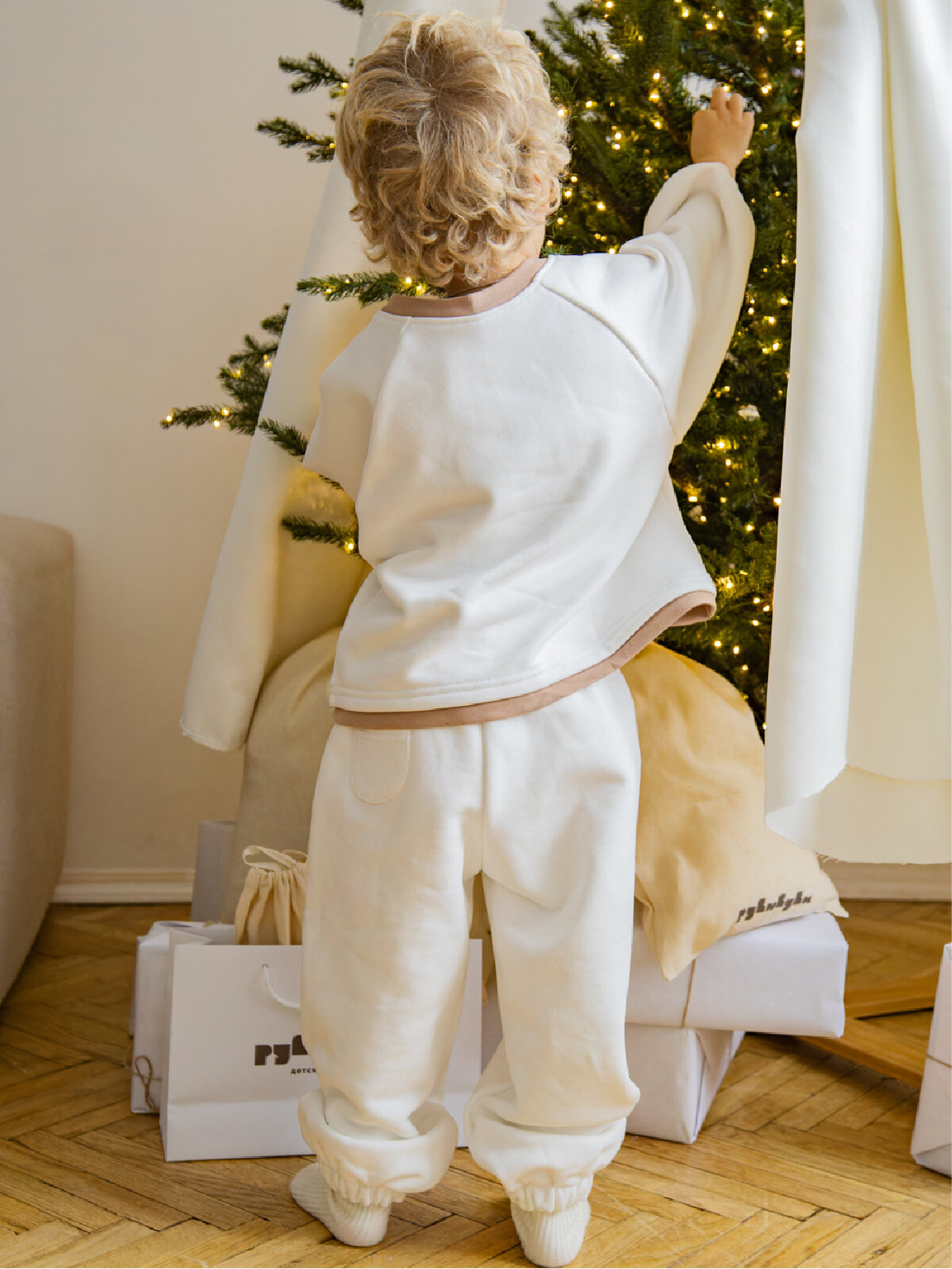 Костюм спортивный рубибуби, размер 86-92, экрю интересное: