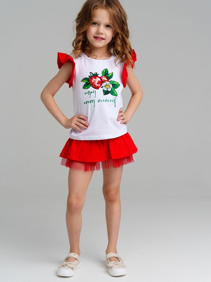 Комплект одежды playToday Весна-лето 2025, размер 122, белый-красный интересное: