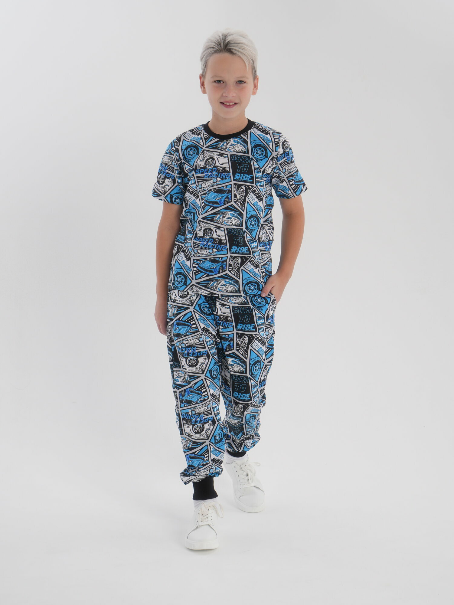 Комплект одежды SOVALINA Комиксы, размер 146, синий/белый/черный