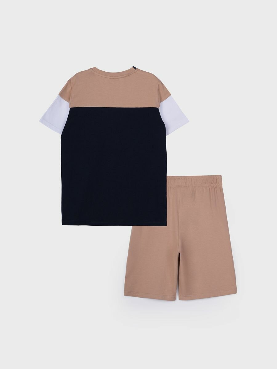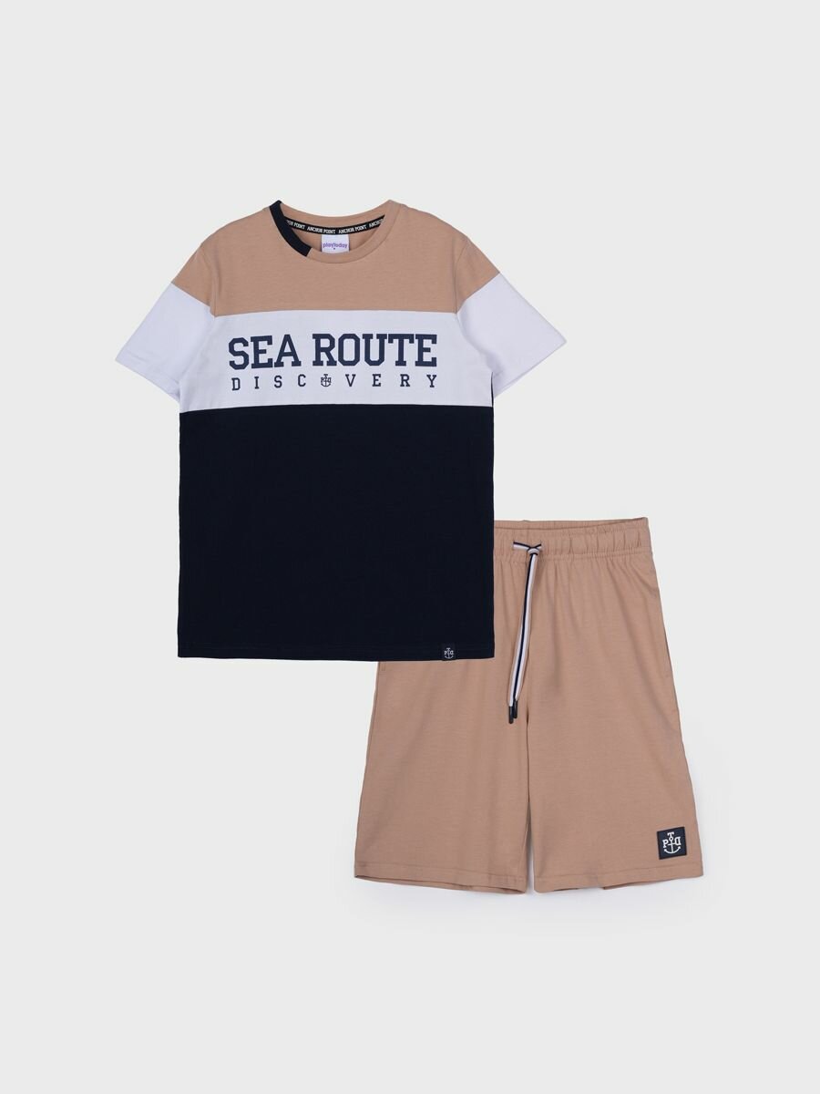 Купить Комплект одежды playToday Весна-лето 2025, размер 140, бежевый/темно-синий