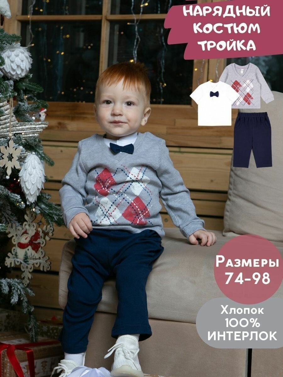 Комплект одежды Веселый Малыш, размер 98, серый/синий
