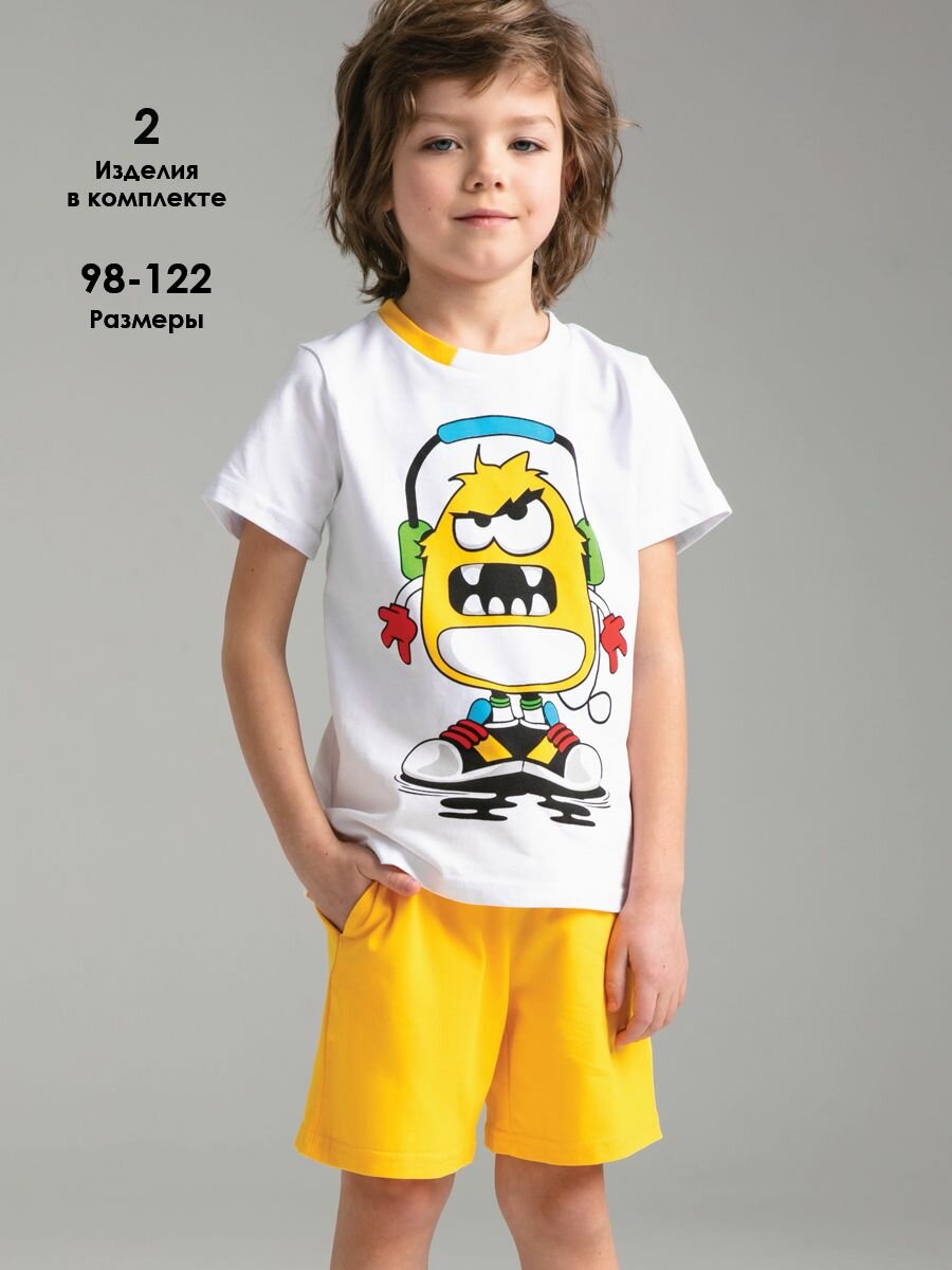 Купить Комплект одежды playToday, размер 122, белый/желтый/голубой