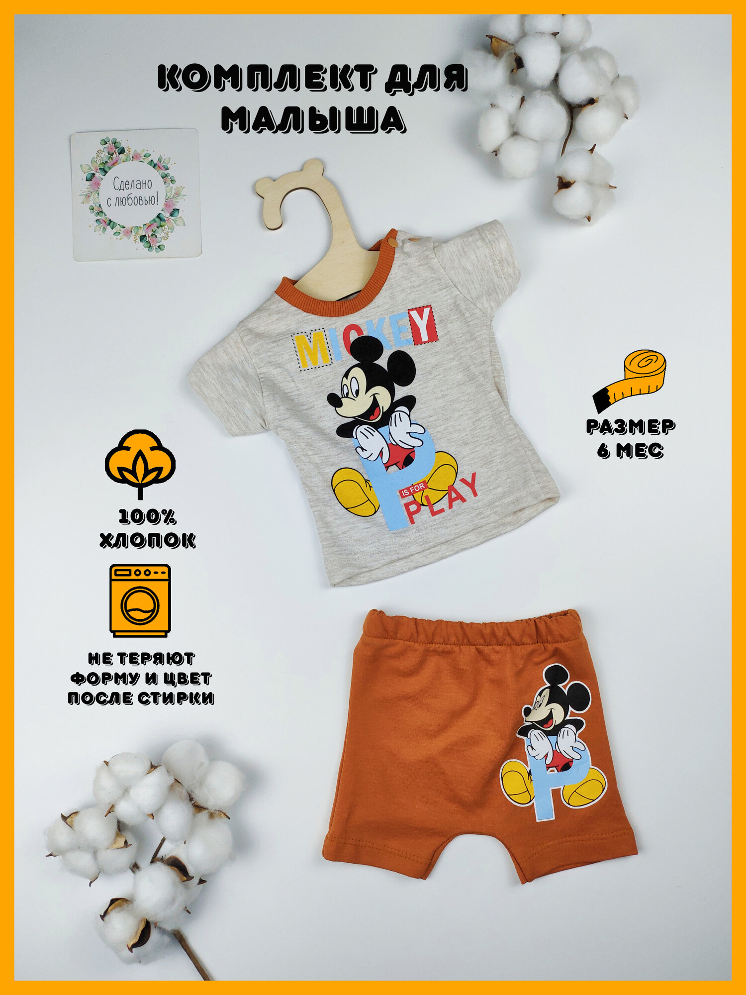 Комплект одежды Базовая коллекция, размер 12 мес, серый/оранжевый интересное: