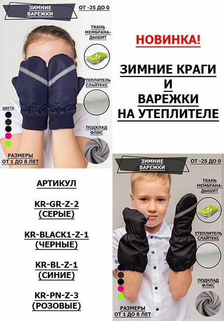 Варежки ZL для взрослых и детей, размер 3-5 лет, черный