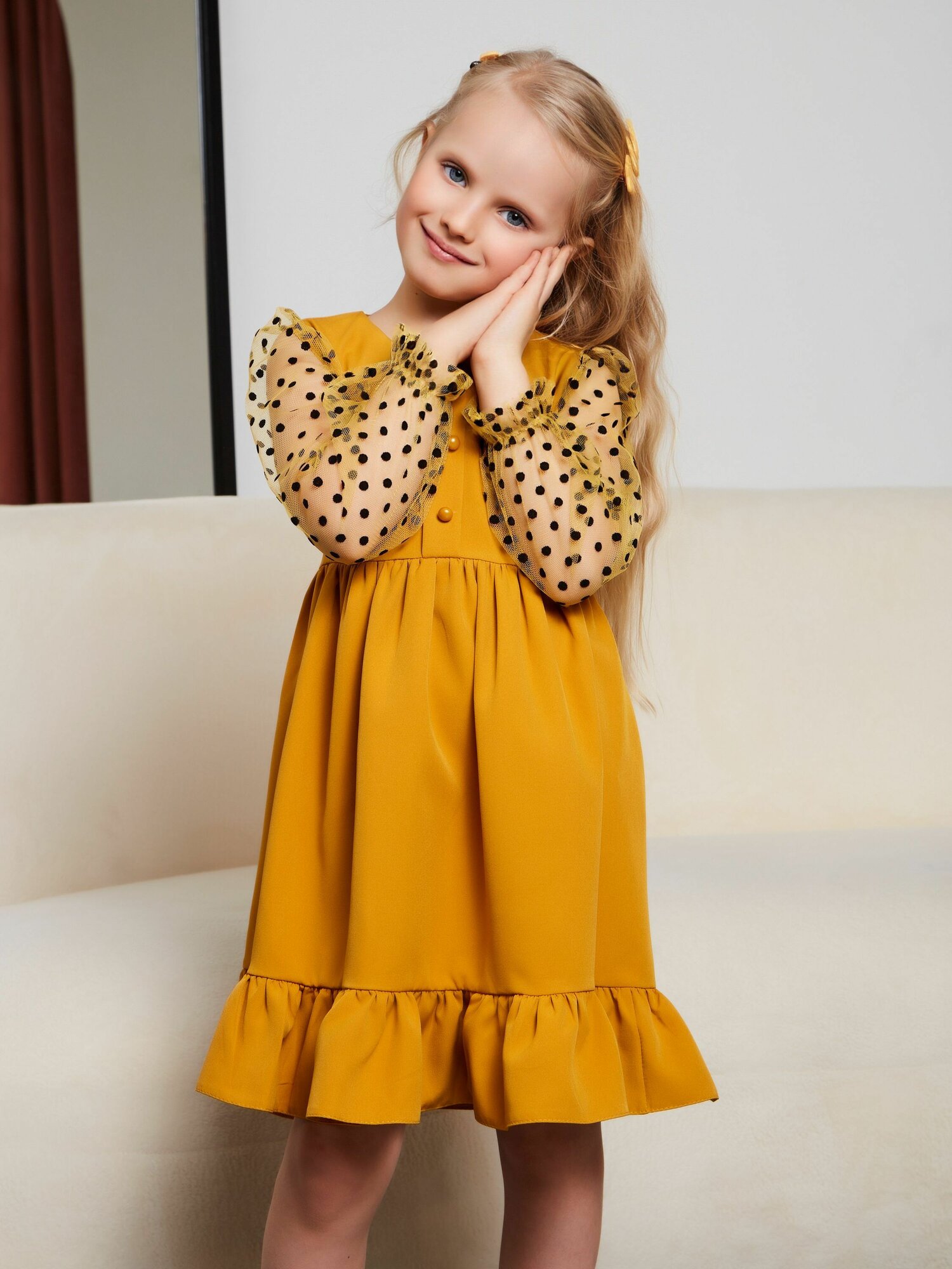 Школьное платье Sofisha kids Зима - весна 2025, размер 30, желтый/горчичный