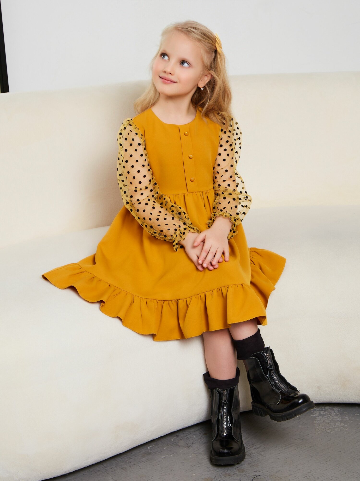 Школьное платье Sofisha kids Зима - весна 2025, размер 30, желтый/горчичный