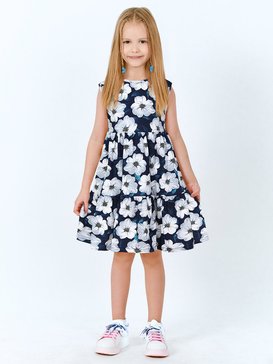 Платье KETMIN детское в садик летнее хлопок, размер 122, темно-синий