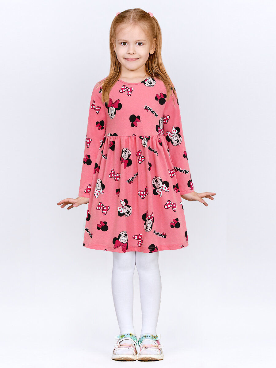 Платье KETMIN в садик с длинным рукавом трикотажное, размер 128, розовый, коралловый
