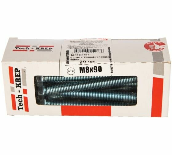 Купить Tech-Krep Болт DIN933 с шестигранной головкой оцинк. М8x90 20 шт - коробка с ок. Tech-Kr 126515