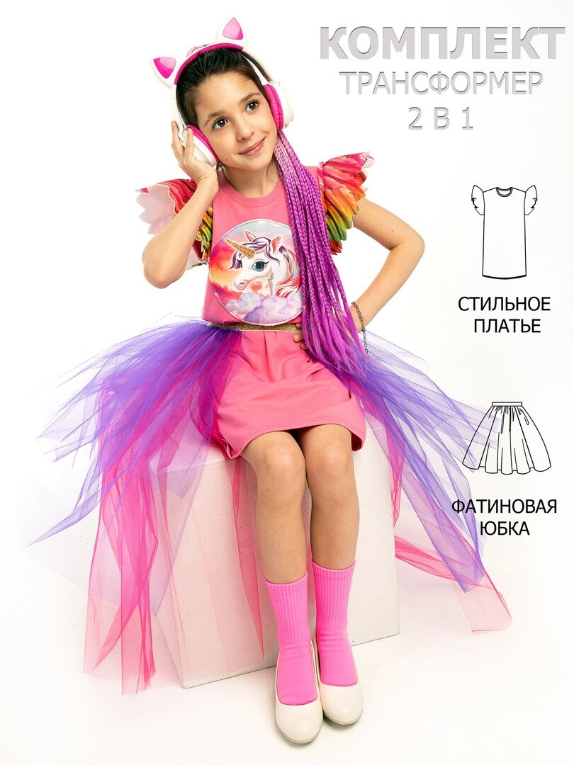 Школьное платье OLLIRI школа, комплект, размер 86, фиолетовый